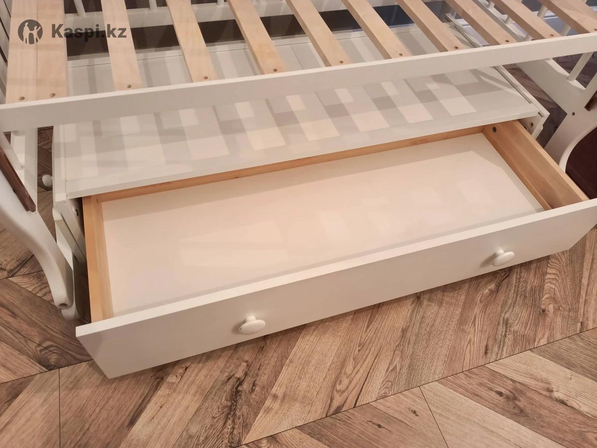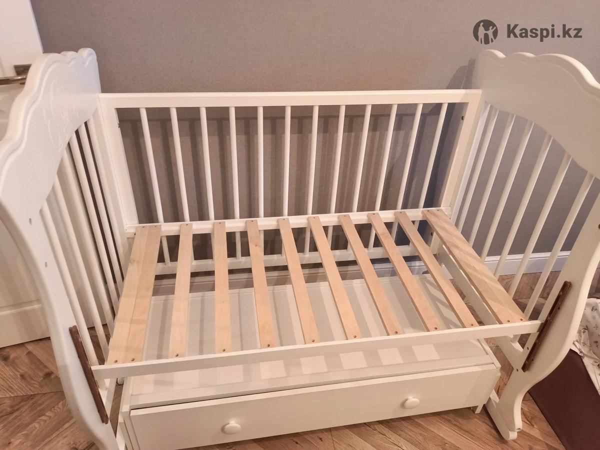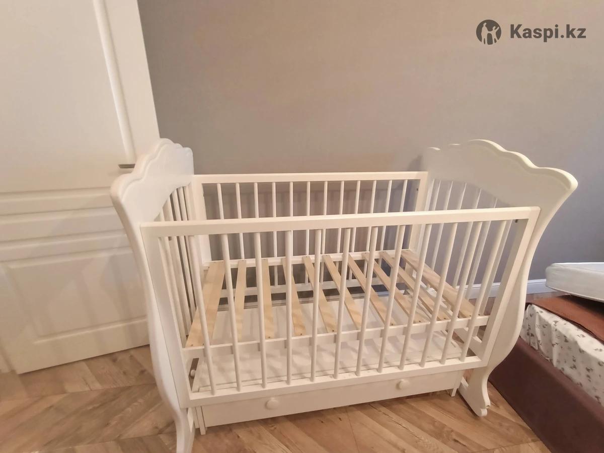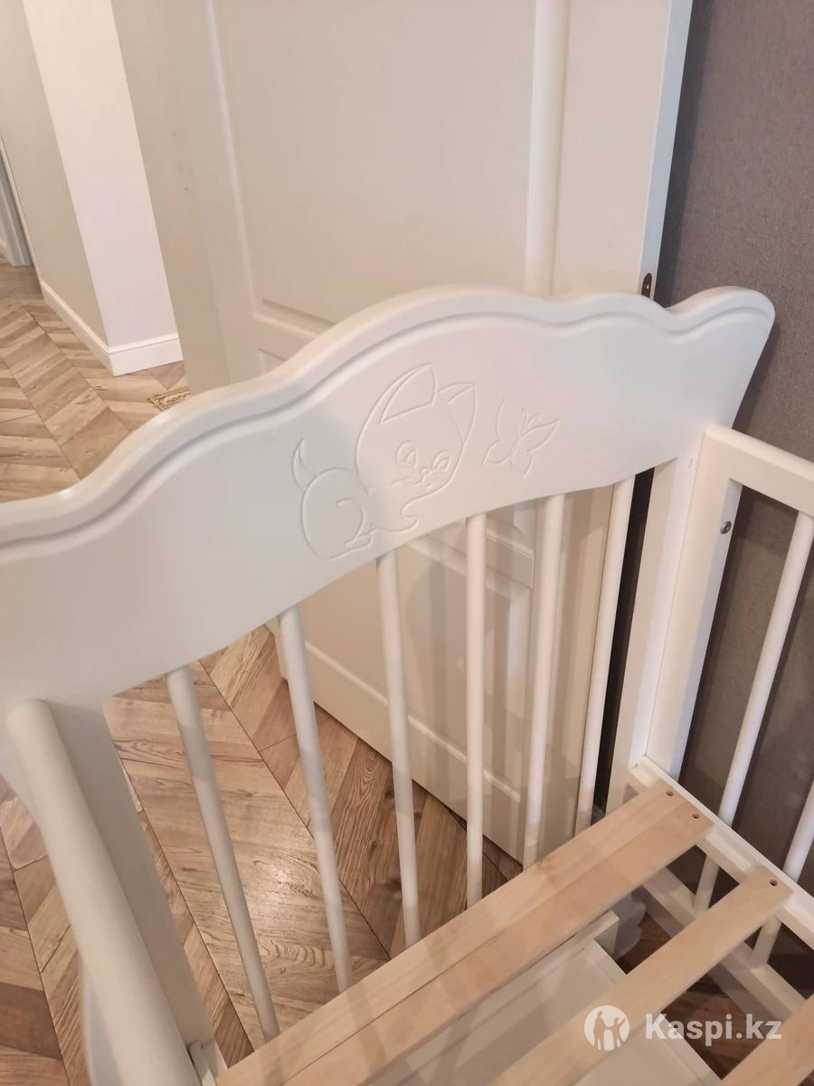 Продается белая кровать детская, дерево береза, производство Россия, два вида качания, регулируемая высота дна, съемная передняя стенка, доп. ящик для хранения белья + матрасик на кокосовом основании (после химчистки). Красивый рисунок котенка. Размер 12080 см. Инструкция, ключ для сборки в комплекте. Есть незначительные царапины на корпусе и одном из стопоров, на пользование никак не влияют. Цена 15 000 тг. Доставки нет, самовывоз район ЭКСПО, кровать уже в разобранном виде.