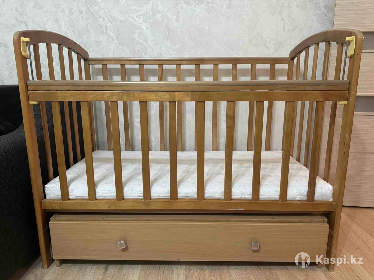 Продам детскую кровать с матрасом. В хорошем состоянии, матрас не продавленный, без запаха. Ребенок не лежал толком. Матрас Белорусского производства. Кровать по высоте регулируется, можно снять бортик и приставить к взрослой кровати. Самовывоз: проспект Аль-Фараби, в районе Экспо