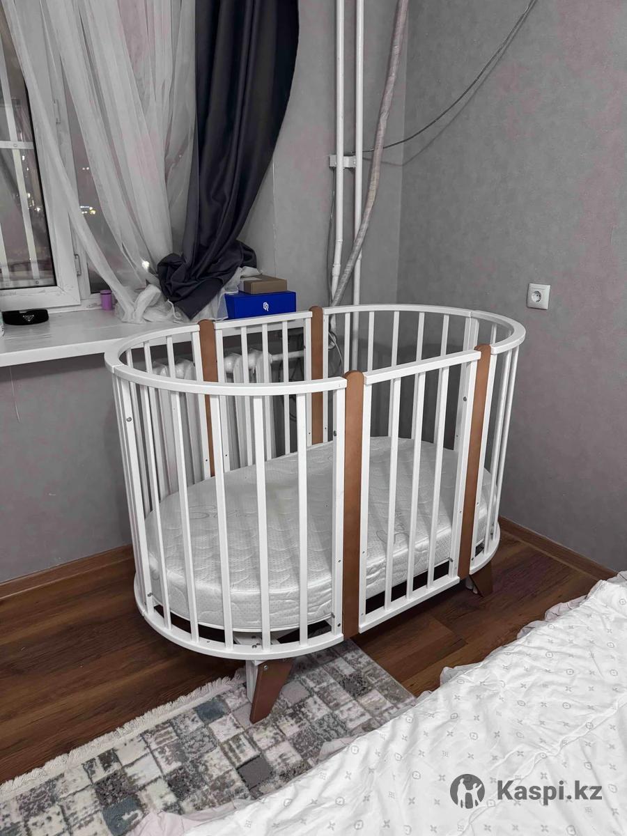 Детская кроватка Tomix Bella. Кровать 6в1, маятник в собранном виде дальше собрать кровать легко. Экологичная овальная кроватка-трансформер Tomix Bella выполнена из отборной древесины березы и прочного МДФ. Детская кровать покрыта нетоксичными гипоаллергенными лаками и красками на водной основе. Благодаря вставкам из бука и необычным ножкам, кровать смотрится стильно и современно. Кровать растет вместе с ребенком и имеет несколько вариантов трансформации: круглая кроватка (75 х 75 см) и пеленальный столик; овальная кровать (125 х 75 см), которую можно использовать как приставную ко взрослой кровати, сняв боковую стенку; диванчик; манеж; столик для кормления и игры и 2 стульчика; Кровать Bella оснащена маятником универсального качания, который может быть установлен как на круглую кроватку, так и на овальную. Ложе кровати регулируется по высоте в 2 положениях (51 и 32 см от пола). Для сна малыша используется верхнее ложе. Нижний уровень можно использовать, когда ребенок подрастет, и кроватка может использоваться как манеж. Кровать оснащена 4 колесами с возможностью фиксации и установки в различных положениях (для круглой и овальной кроватки). Также можно установить кровать на ножки, что добавит ей легкости и изящности.
