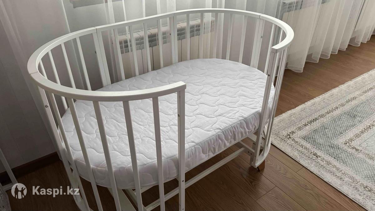 Детская кровать трансформер Боковая стенка снимается и можно приставить ко взрослой кровати. Все как на фото. Лежали только первые 2 месяца 2 матраса на каспи продаются отдельно(25тыс) Я отдам даром