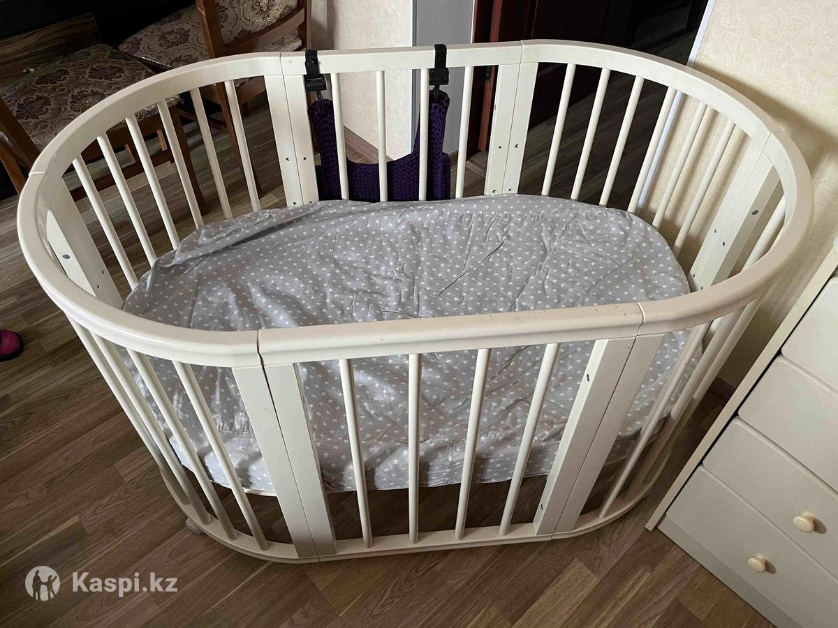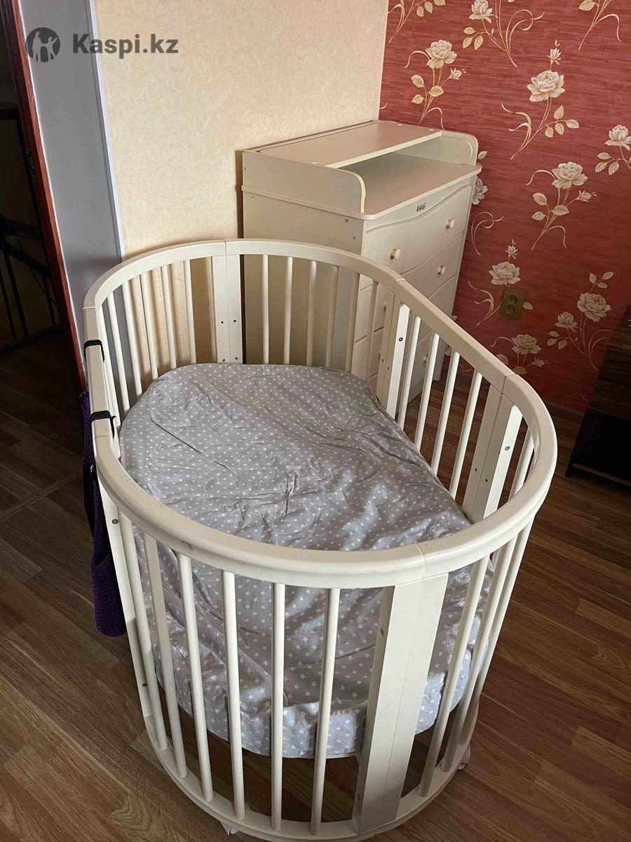 Детская кроватка трансформер от рождения это кроватка-колыбель, а с 6 месяцев полноценная, овальная кровать.