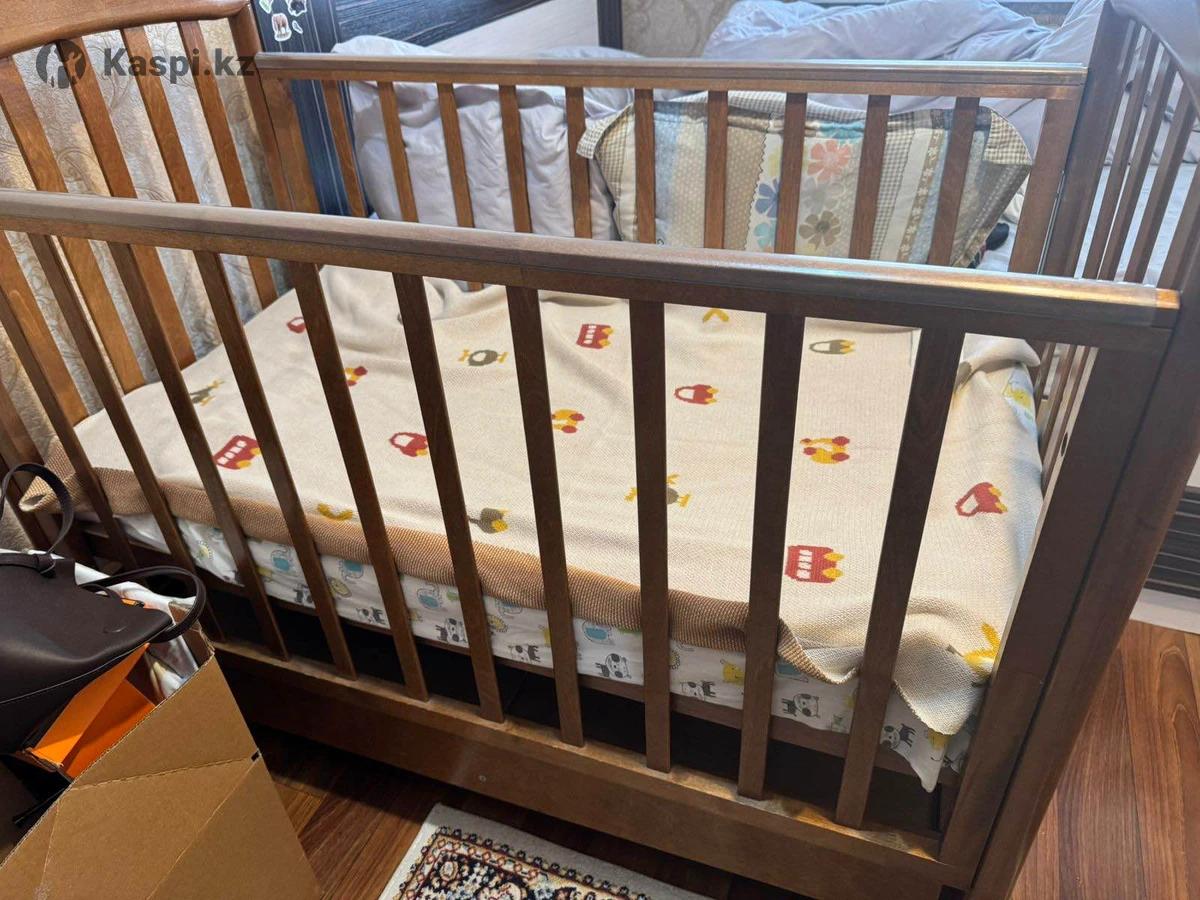 Детская кроватка из натурального дерева, есть место для хранения вещей, матрас в подарок