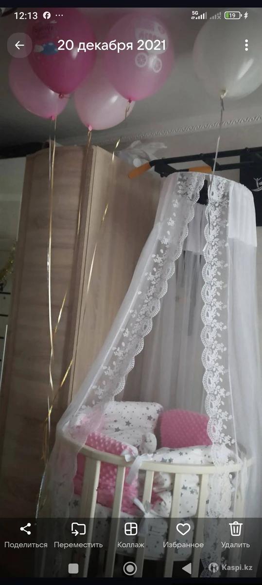 Продам кроватку- трансформер, 2 матраса в комплекте. Цвет слоновая кость. Так же есть комплект белья и розовые бортики и тюль . Кокон в подарок.