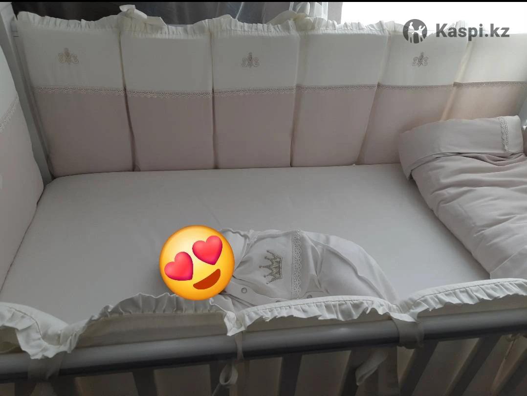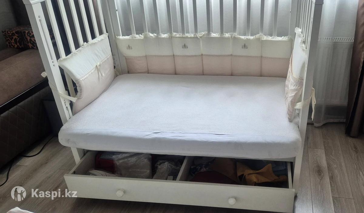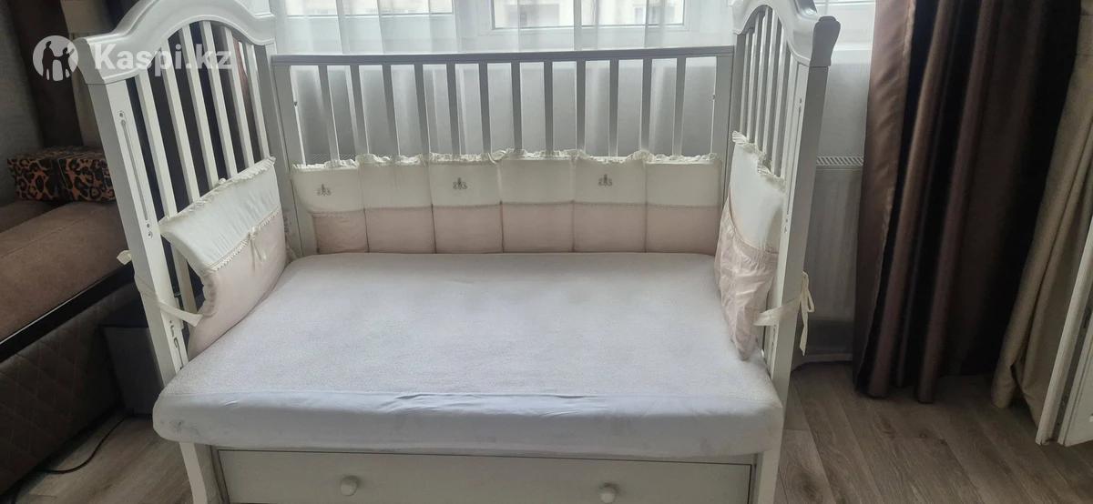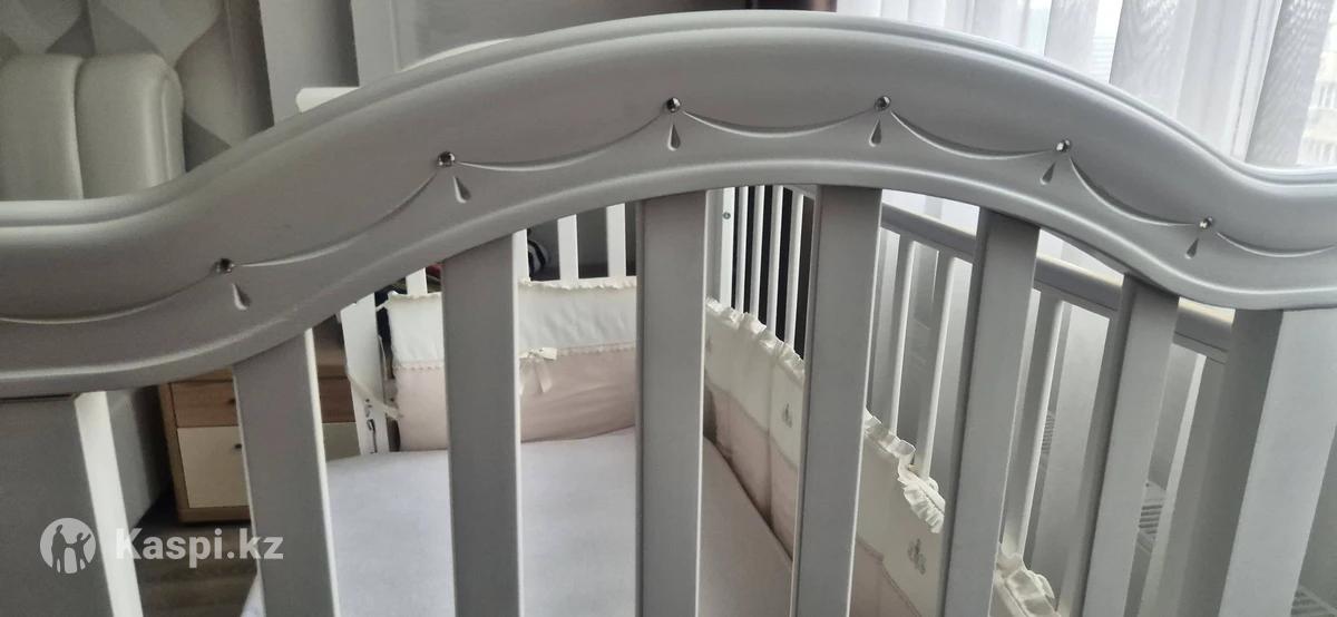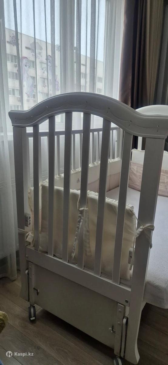 Продам шикарную детскую кроватку. Натуральное дерево. Роскошное украшение стразами. Регулируется по высоте в 2х положениях. Нижний выдвижной ящик для белья. Очень вместительный и достаточно глубокий. Съемный передний бортик,для возможности установки кроватки с кроватью мамы. Маятник качания-продольный. Производство России. Идеальное состояние. Покупали новую для единственной дочки. Кокосовый ортопедический матрас в комплекте. Также имеется роскошный комплект постельного белья, одеяло и балдахин. Цвет белья бежево-белый. Подойдет и девочке и мальчику. Все вопросы дополнительно