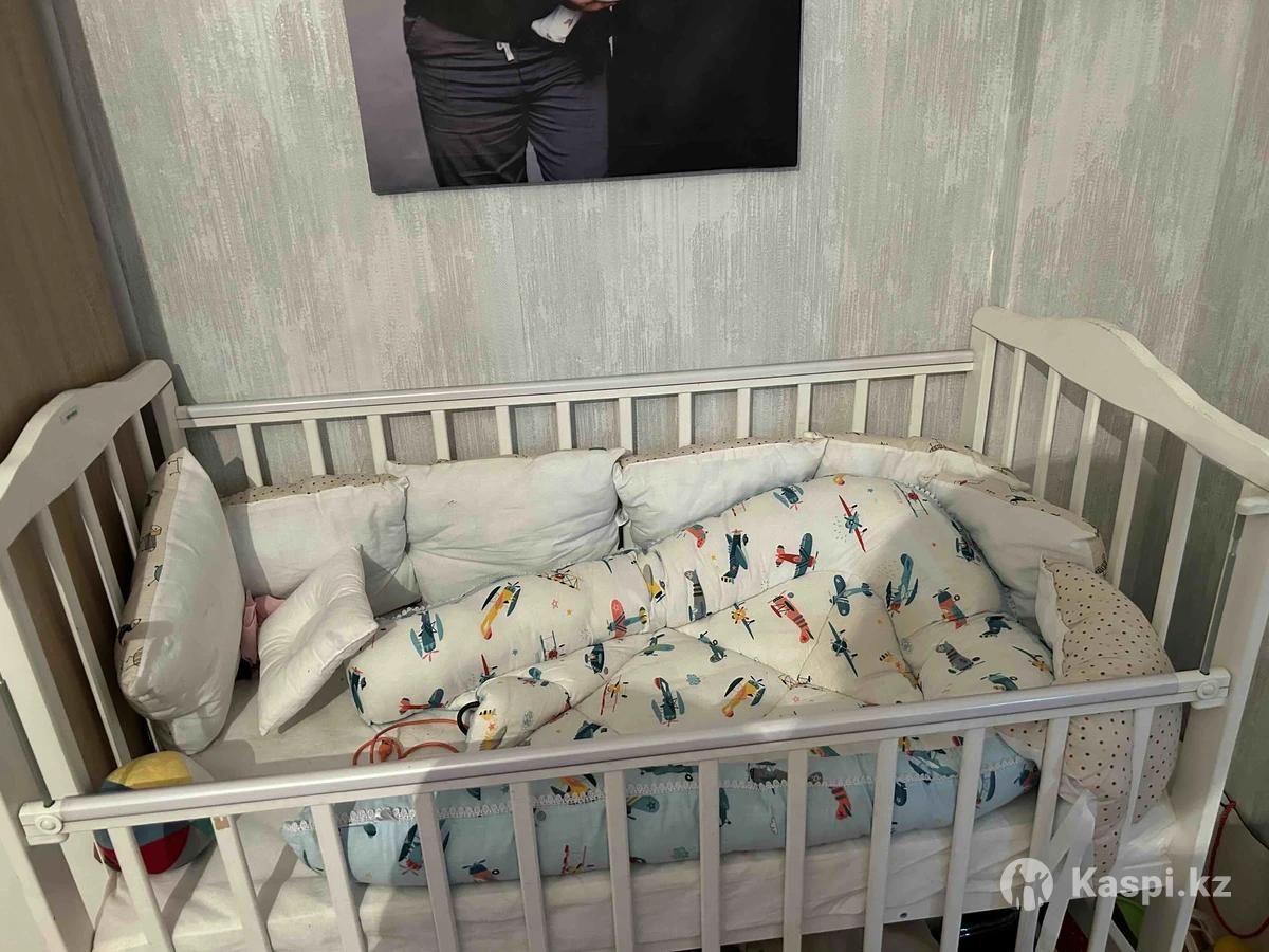 Детский манеж (кроватка) с матрасом, бортиками, подушками и коконом (гнездышком) для новорожденного. Матрастардың чехолдары бар, бәрі таза, ұқыпты қолданылған.