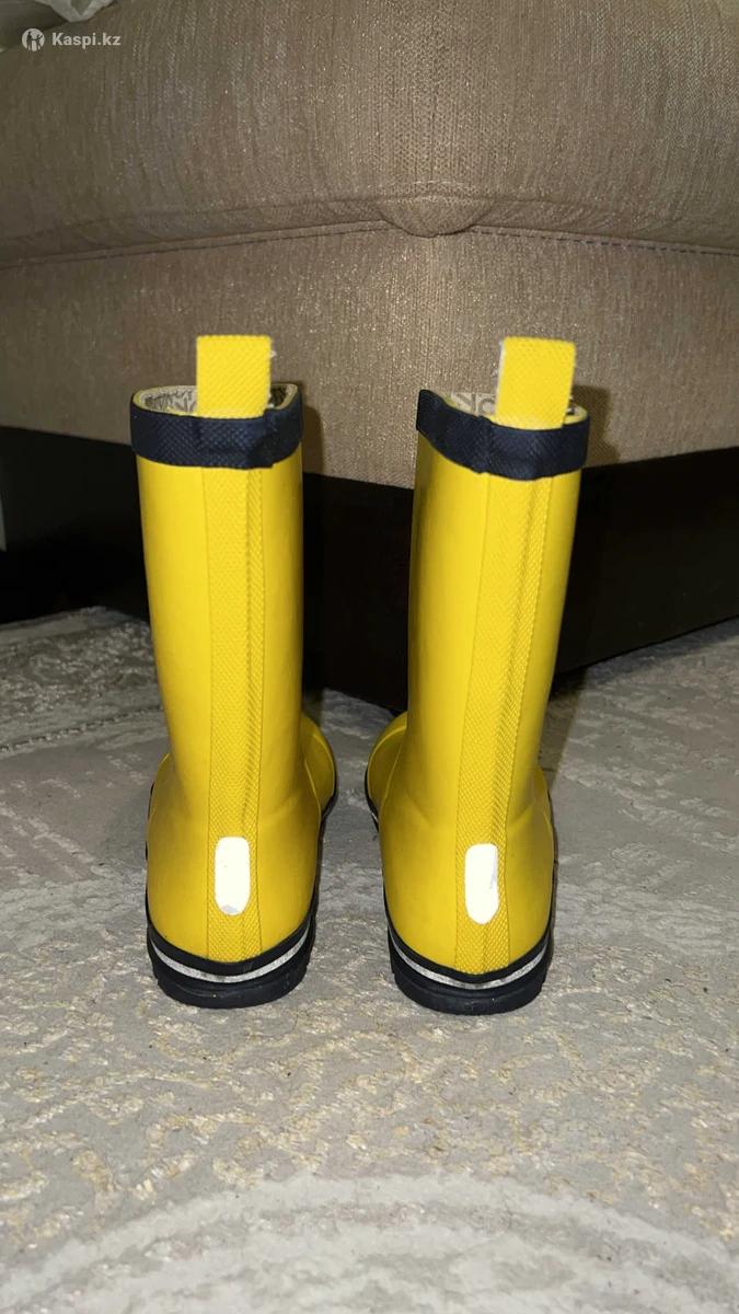Детские резиновые сапоги «Reima» со светоотражающей окантовкой на подошве. Модель изготовлена из материала, который на 40% состоит из натурального каучука, а подошва изготовлена из вулканизированной резины, не содержащей ПВХ. Детские резиновые сапоги имеют хлопковую подкладку для комфорта и съемные стельки с принтом Happy Fit. Состояние идеальное!