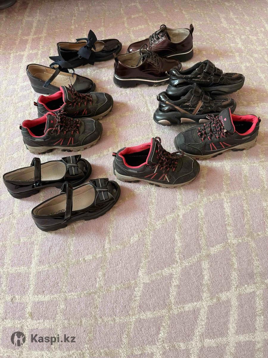 Если заберете всю обувь, уступлю еще. Успейте приобрести, ведь детки растут очень быстро. Продаю легкую и качественную обувь: туфли для школы, сандалии для садика кожаные, кроссовки, кроксы. Обувь в хорошем состоянии, носилась аккуратно, подойдет как минимум на пару сезонов. 1 фото вся обувь 32 размер (туфли и ботиночки школьные, кроссовки горные непромокаемые) цена за все 10 000. По отдельности от 2000 тг 2 фото (ботинки 29, сандали натуральная кожа все 30,31,32 р, туфли 28 р, мокасины 30 и 31 р, сланцы 29 и 30 р) за все 8000 тенге, по отдельности от 500 тенге) 3 фото - 2 пары туфлей для школы 33 размер бренд Betsy цена 1500 за пару, сапоги теплые с натуральным мехом Thomas Graf 32 размер, цена 3000 за пару. Все что на фото отдам за 8000 тенге. 4 фото сандали 33 размера. 2 пары натуральная кожа бренда Geox цена 3000 тенге, красные сандали по 1000 тенге. Все что на фото отдам 7 000 тенге. 5 фото натуральная кожа, бренд Скороход размер 26. В идеальном состоянии. Цена за пару 2500 тенге. 6 фото сапожки осень/весна для школы и прогулки. Размер 33. Цена за пару 2000