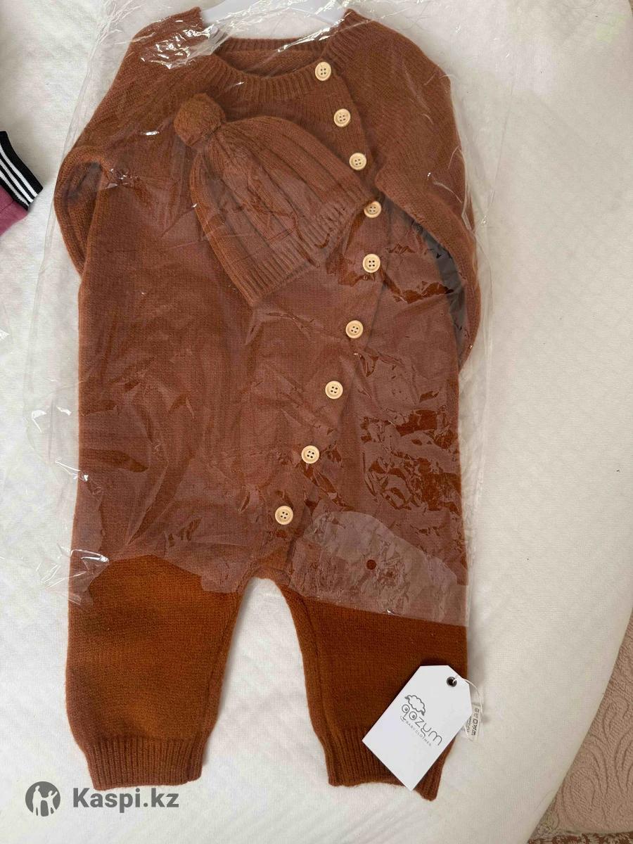 Детский вязаный слип с шапкой. Размер 90