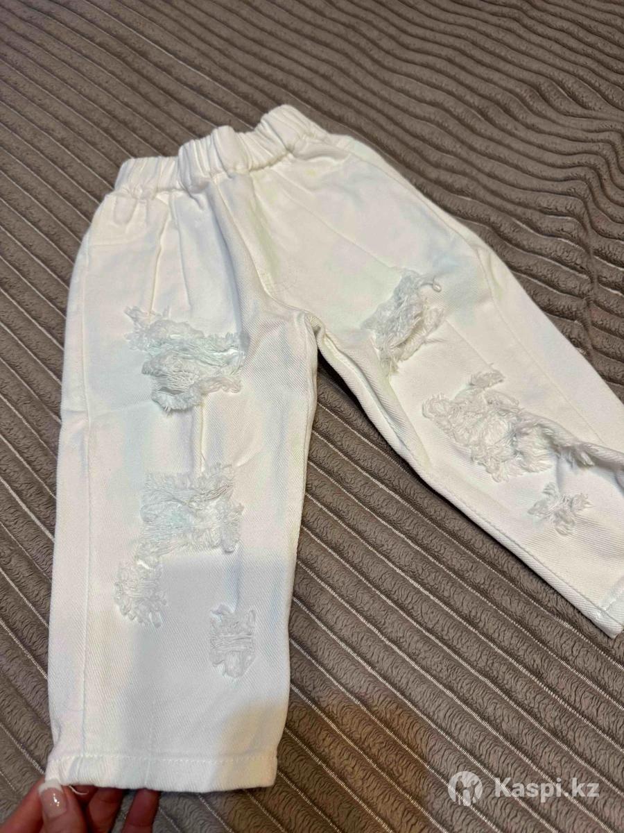 Джинсы рваные в белом цвете для девочки, размер 80, подходит до размера 90. Без примерки, через курьера.
