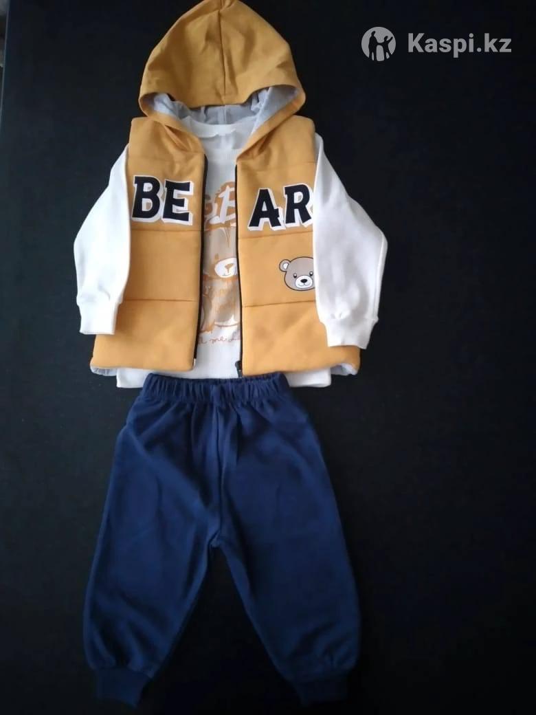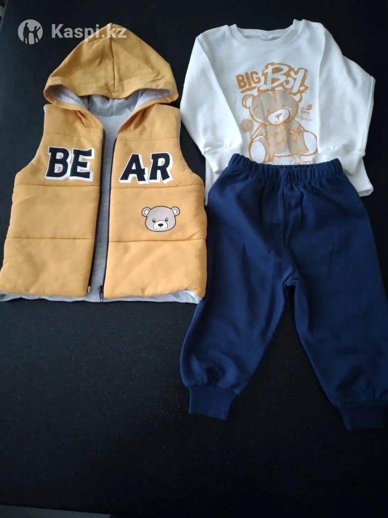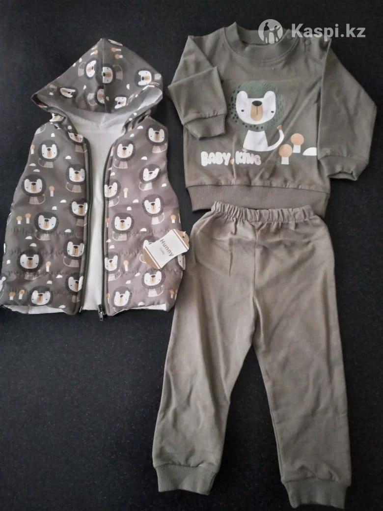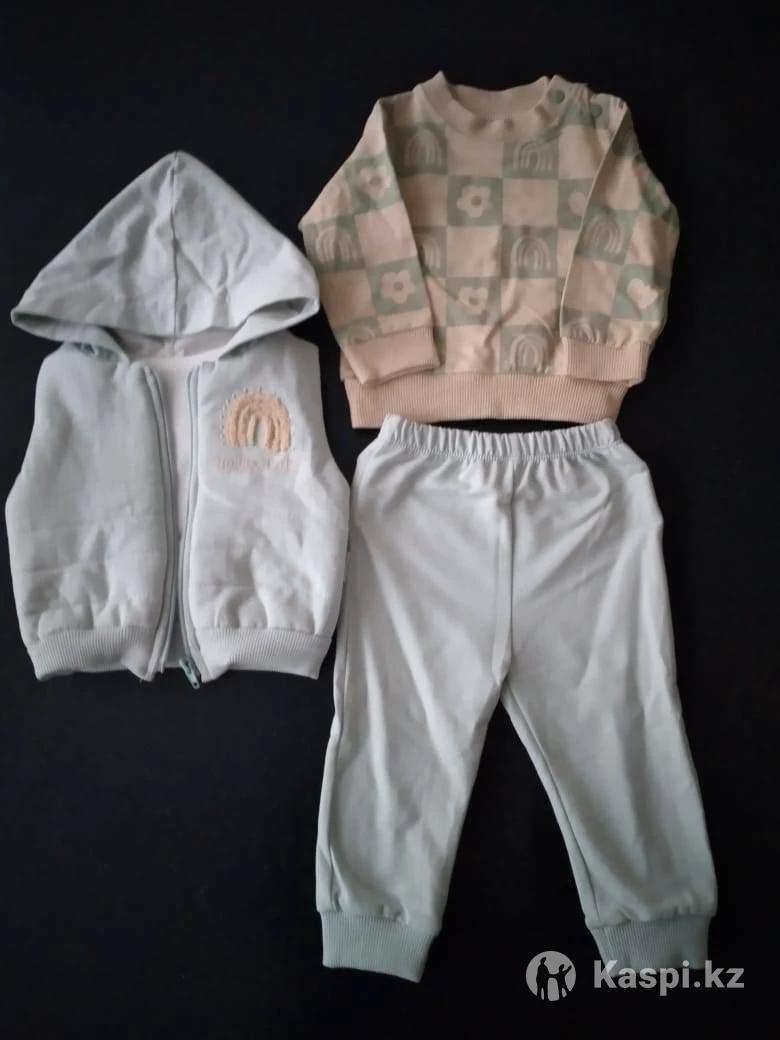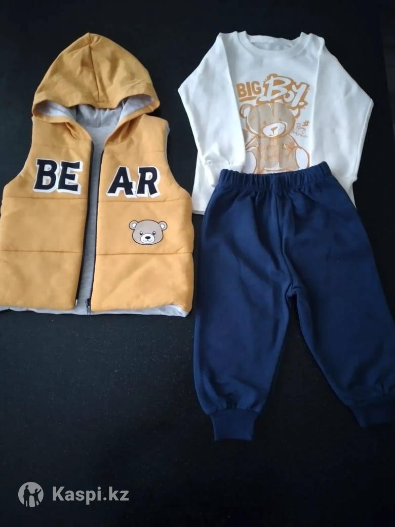 Костюм тройка. Яркий болоневый жилет, трикотажная кофточка и трикотажные штанишки Турецкого производства. Размеры на 2, 3, 4 года. Можно носить как в комплекте, так и по отдельности, сочетая с другими вещами.