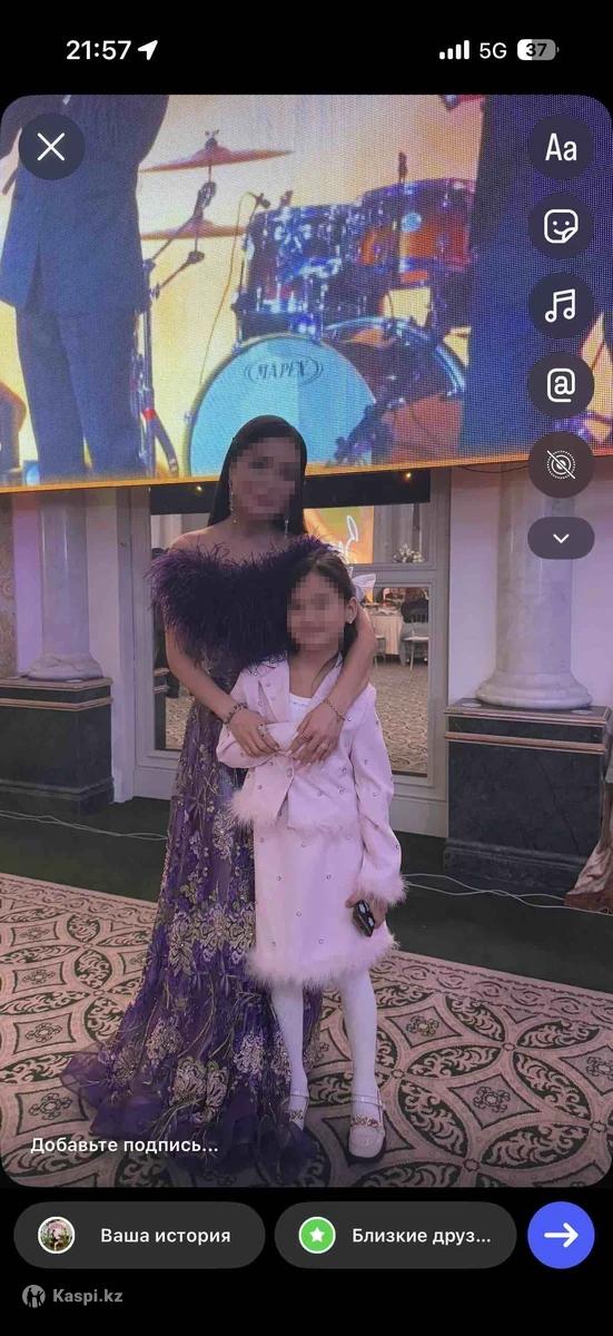 Костюм-юбка с перьями одевали один раз на той, почти новая, очень красивая двойка, подойдет на 7-8-9 лет, покупали за 25000, продам за 15000