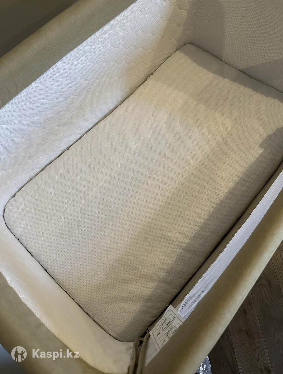 Приставная кроватка для новорожденных. Есть матрасик, кроватку можно качать как колыбель. Первое время очень хорошо помогала, когда малыш еще не переворачивался и не ползал.