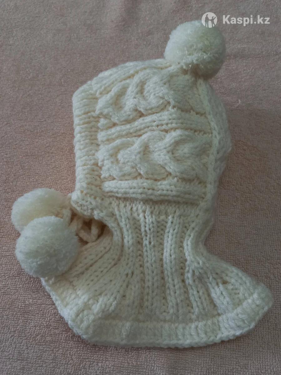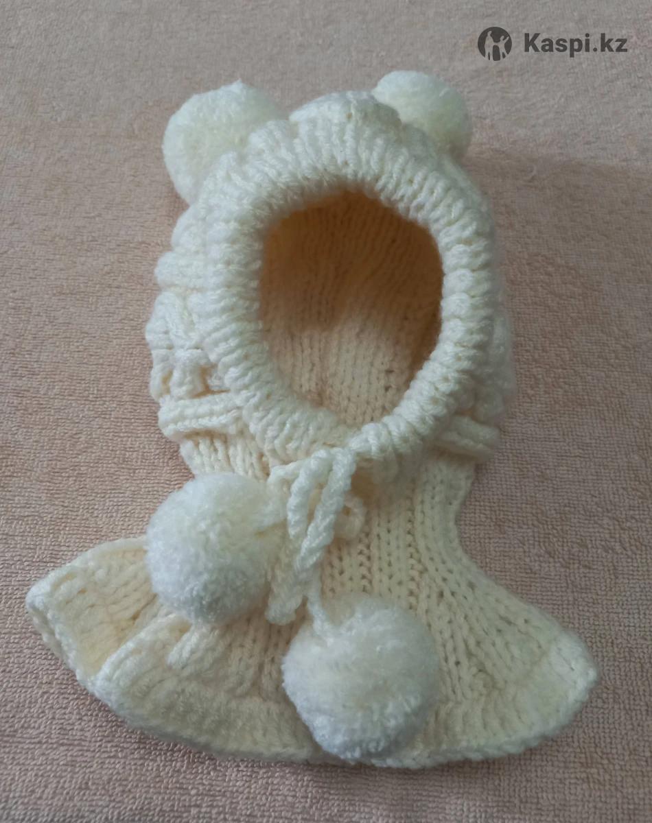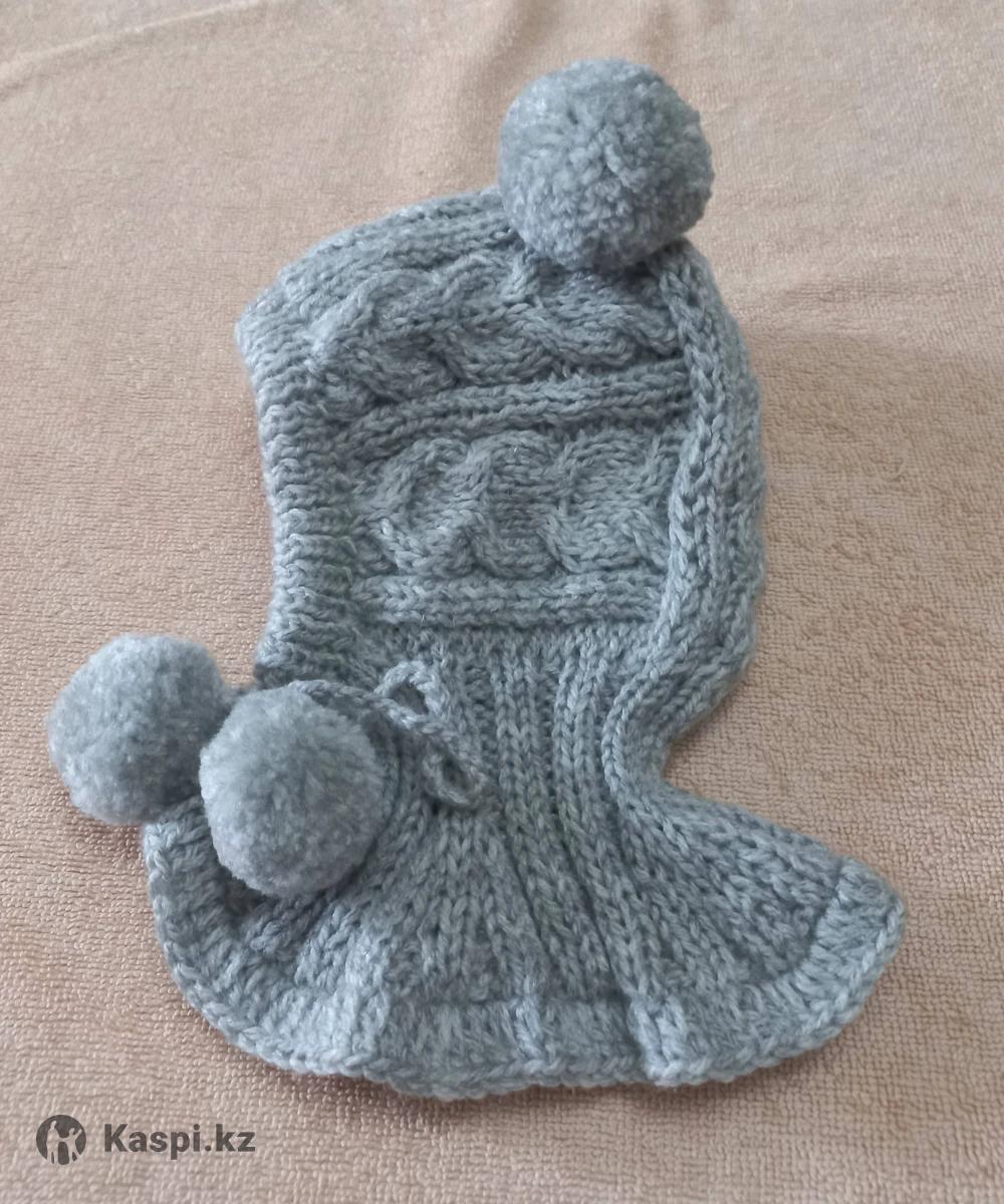 Шапочка шлемик, на подкладке. Ручная работа, пряжа детская гипоаллергенная. Размер 3-6 мес.