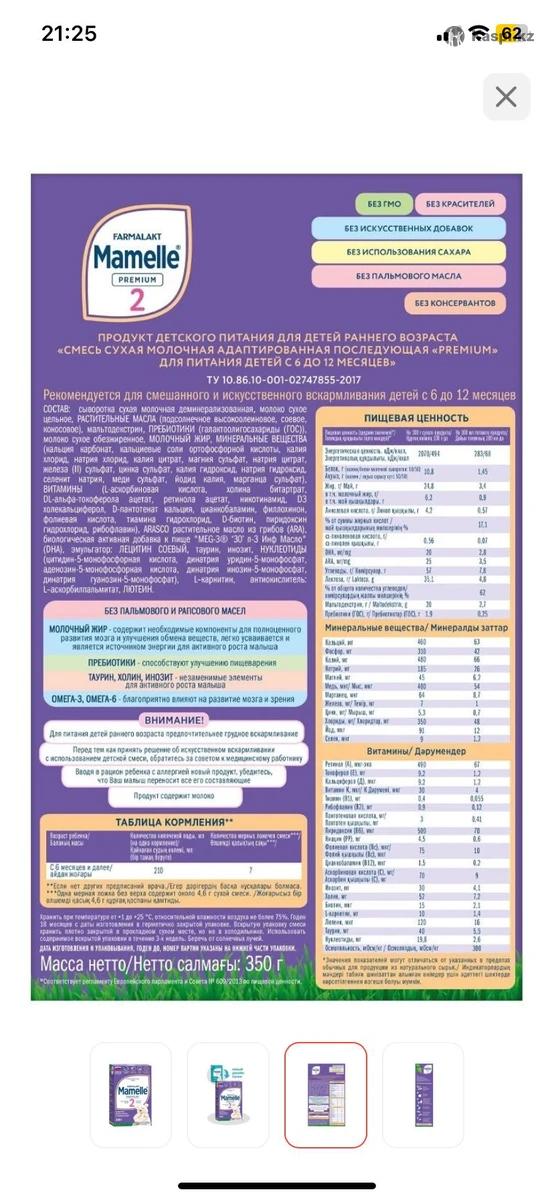 детская смесь Мамелле с 6мес до 12мес