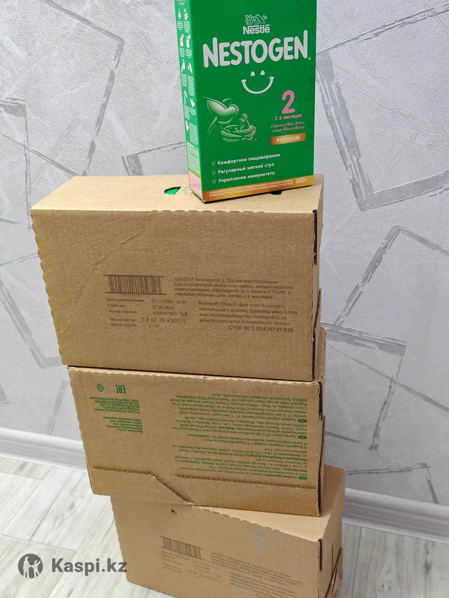 Детская смесь молочная Nestogen (с пребиотиками, с лактобактериями, без пальмового масла): 1 - 300г до 6месяцев есть 36 пачек. Срок годности до 06.05.2026 2 - 300г c 6 месяцев есть 30 пачек. Срок годности до 27.05.2026 Стоимость 1 пачки 1700 тг. (в магазинах 2 625 тг) Самовывоз район Шаляпина-Алтынсарина или Яндекс. доставка. Молоко обезжиренное, сыворотка молочная деминерализованна, мальтодекстрин, смесь растительных масел (низкоэруковое рапсовое, подсолнечное, подсолнечное высокоолеиновое, кокосовое), молочный жир, пребиотики (галактоолигосахариды (ГОС) и фруктоолигосахариды (ФОС)), кальция цитрат, эмульгатор (соевый лецитин), натрия цитрат, калия хлорид, калия фосфат (калиевая соль ортофосфорной кислоты), витаминный комплекс (L-аскорбат натрия (С), DL-альфа-токоферола ацетат (Е), D-пантотенат кальция (Пантотеновая кислота), никотинамид (РР), тиамина мононитрат (В1), ретинола ацетат (А), пиридоксин гидрохлорид (В6), рибофлавин (В2), фолиевая кислота, фитоменадион (К), D-биотин (Биотин), D3 холекальциферол (D), цианкобаламин (В12)), рыбий жир, культура лактобактерий , магния цитрат, калия цитрат, таурин, железа сульфат, цинка сульфат, нуклеотиды, меди сульфат, калия йодид, лютеин, натрия селенат. Упаковано в модифицированной атмосфере с азотом.