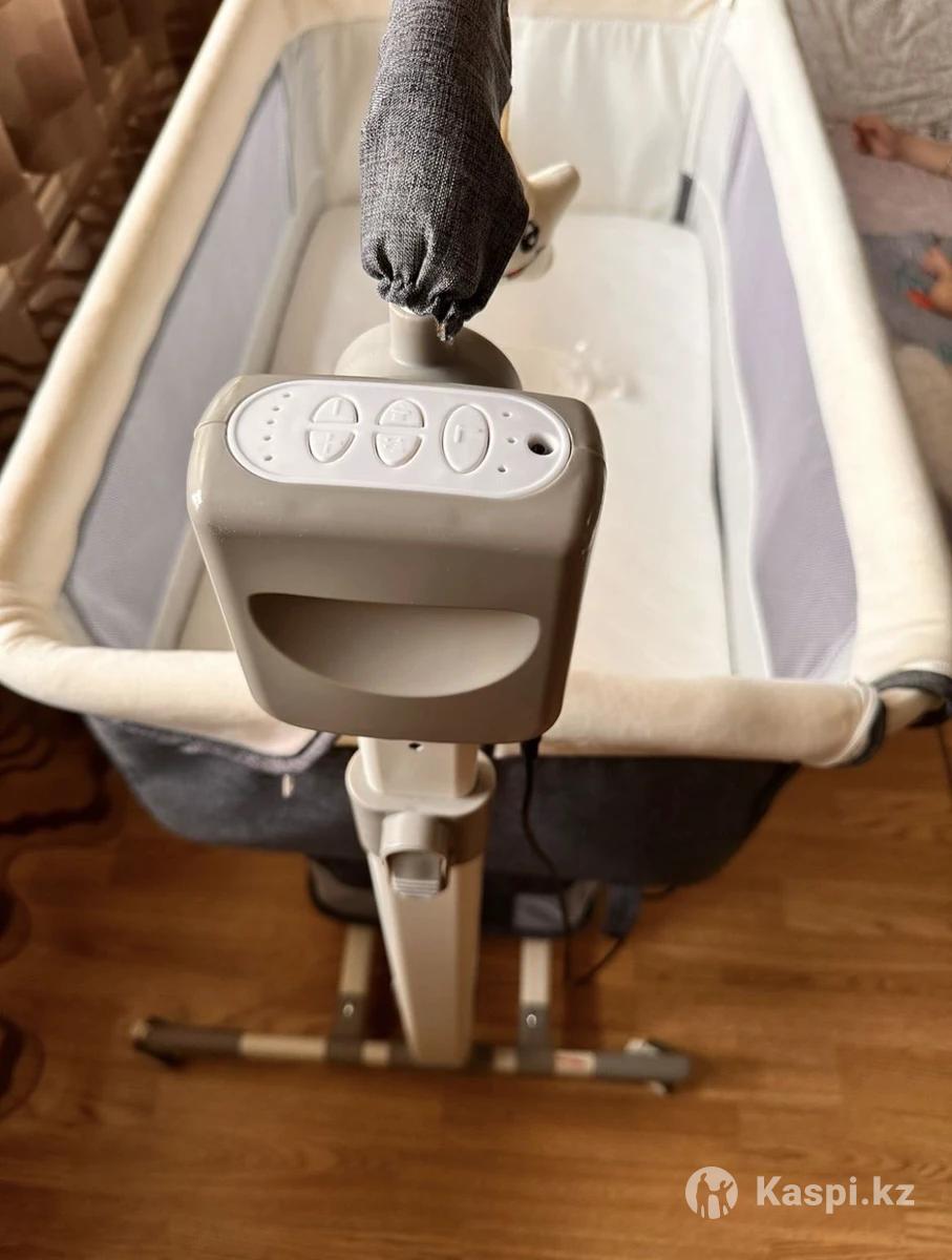 Продам!!! Материал: металл, пластик, текстиль. Есть ящик под кроватью, 4-х колесный с фиксацией, электронная качеля+ ручное качание. Музыкальная, передняя стенка опускается, приставная в комплекте: матрас, чехол, москитная сетка, пульт, шнур зарядка. Самовывоз.Абсолютно чистый, почти как новый. Использовали около 2 месяца.