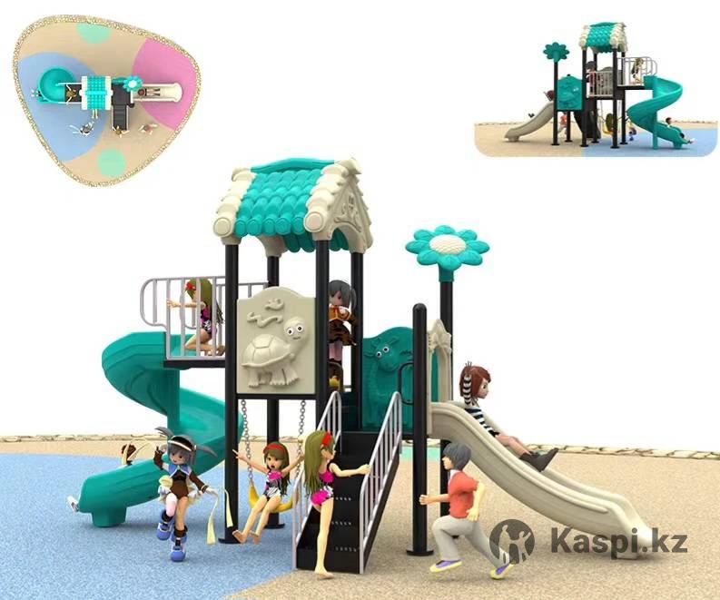 Идеальны для улицы: не выгорают, не нагреваются, водоотталкивающие, морозоустойчивые. 📷 По запросу — отправим фото и видео. Домик, спиральная горка, скат, 3 платформы, лестница Металлокаркас + корейский пластик, устойчив к солнцу, дождю, морозу