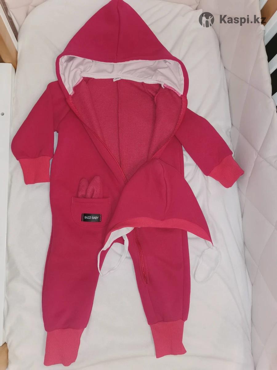 Комбенизон с шапочкой, натуральный материал, цв. Фуксия. Теплый.