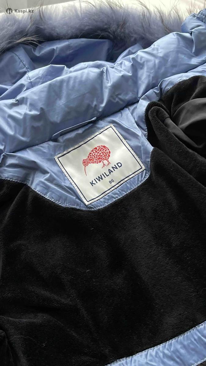 В идеальном состоянии комбинезон от Kiwiland (фабричный Китай), размер 86, натуральный мех, съемный капюшон, резинки на рукавах и ножках - защита от ветра, для худенького ребенка. Очень красивый и стильный, смотрится дорого.