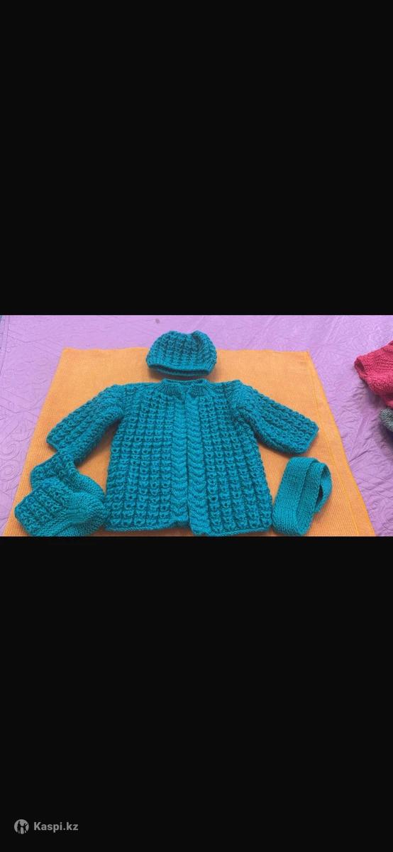 Ручная работа. Шапка+кардиган+пинетки. Турецкая десткая пряжа