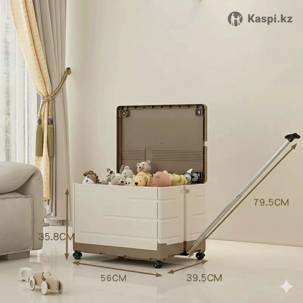 Уборка станет любимой игрой! 🔥 ————————————————————- Стильный, прочный и мега-функциональный бокс. Это и место для хранения, и большая тележка, которую ребенок с удовольствием будет возить сам Главные фишки: • Мобильность: Крепкие колеса и удобная длинная ручка (79.5 см) • Трансформер: Складывается в плоский блин, если временно не нужен • Дизайн: Эстетичный бежевый цвет — идеально для любого современного интерьера • Вместительность: 56 х 39.5 см. Поместится все: от LEGO до пледов