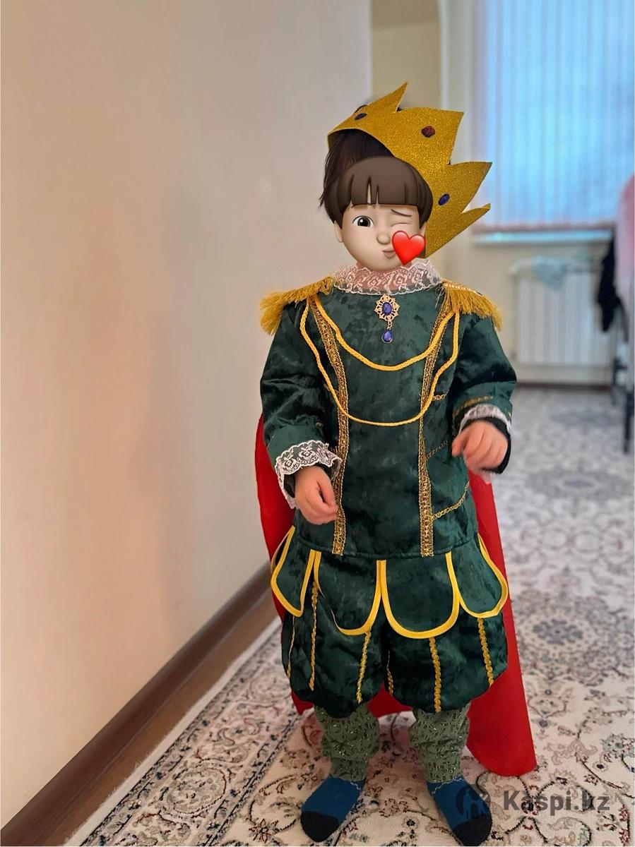 Костюм принца : кафтан, шорты, корона, плащ на прокат. Состояние нового одевался 1 раз на 40 минут . Материал - велюр. На возраст 3-4 года, рост 104 см где то. Залог удостоверение оригинал и 10 000тг. Район выше казахфильма