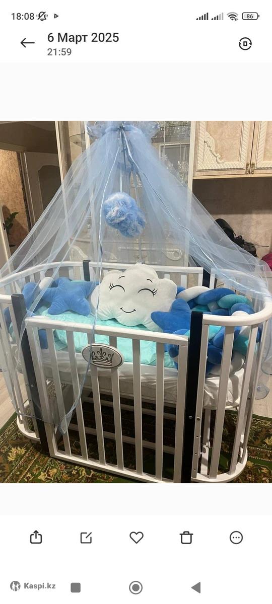 Жап-Жаңа баланың кровать сатылады, мүлдем пайдаланылған жоқ, тербетіледі, манеж болады, әр-түрлі түрде орнатып қоюға болады