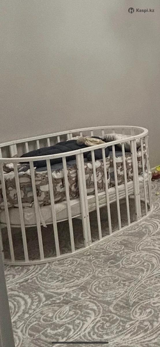 Детский кровати для детей от 0+ до 3-лет В комплекте: -2 матрасы (1 овальный бу, 1 круглый новая) - 2шт наволочка белый и разноцветный - балдахины - бортики для кровать Трещины есть, а так почти новый, состояние хороший Я сама в польным комплект купила за 143 тысяч тенге И сейчас продаю за 50 000тг