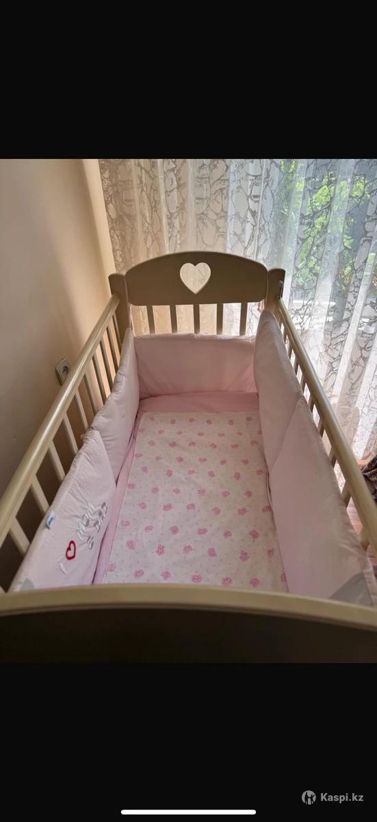 Продается детская кроватка с матрасом Кроватка в хорошем состоянии, изготовлена из массива дерева. Размеры: стандартные. Цвет: светлый беж. В комплекте идет мягкий защитный бортик и матрас «Баюшка» (холкон, кокос + латекс, двусторонний, гипоаллергенный, с чехлом, возможна стирка).