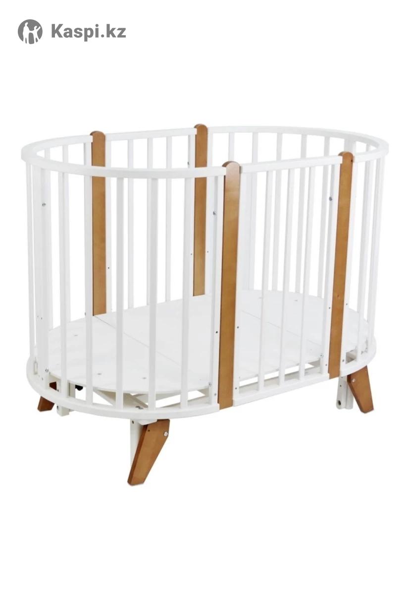 Манеж-кроватка трансформер. Овальной формы, из натурального дерева. В комплекте матрас.Подходит с рождения. Можно использовать как люльку, кроватку, манеж или стульчик. Безопасная, без острых углов. В хорошем состоянии. Цена с матрасом