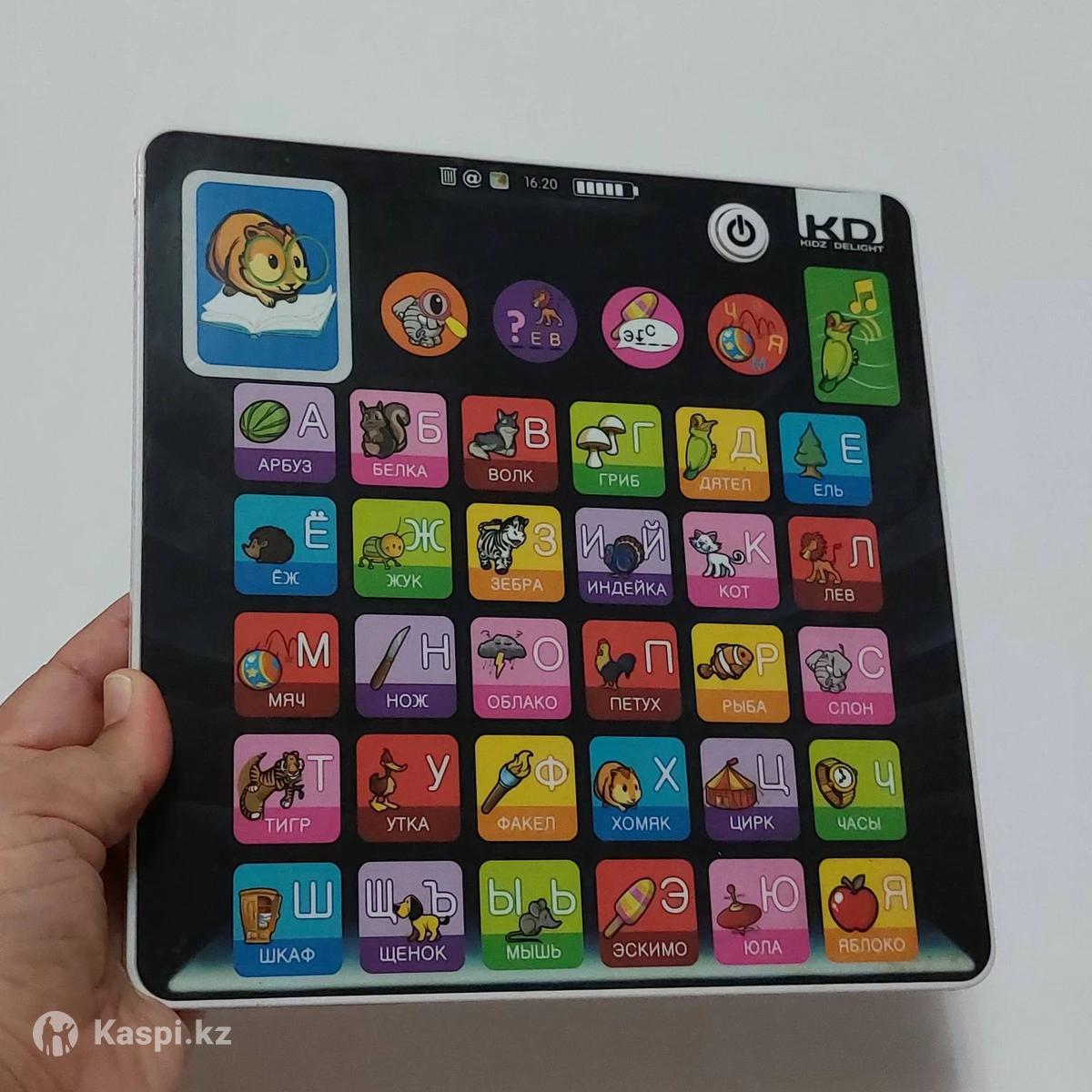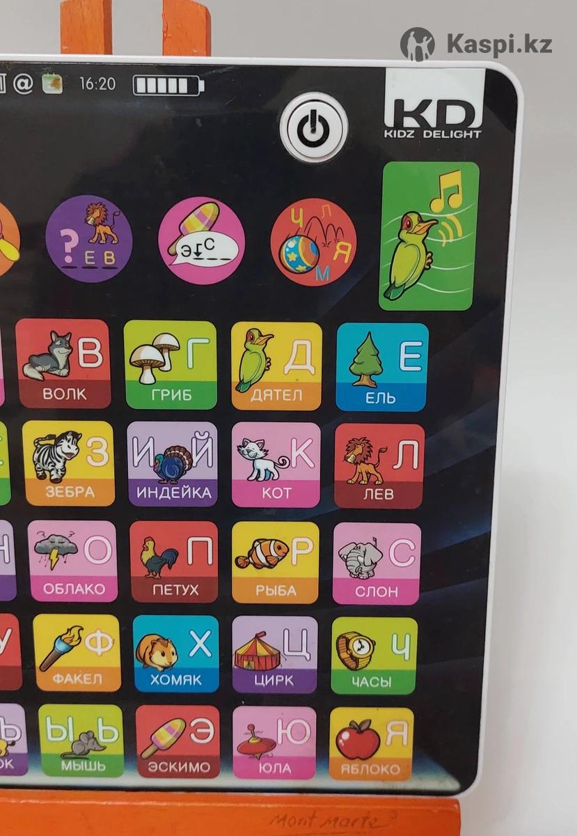 Это детская развивающая игрушка Kidz Delight Мой планшет-азбука. Функционал: Обучающий сенсорный планшет с русским алфавитом, звуковыми эффектами и обучающими играми. Дизайн: Планшет выполнен в форме реального планшета с сенсорными кнопками-буквами, изображениями предметов на каждую букву (арбуз, белка, волк и т.д.). Целевая аудитория: Предназначен для дошкольников для изучения букв, звуков и слов в игровой форме.