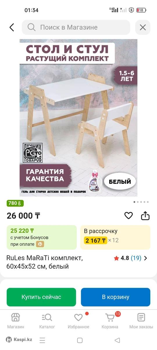 Продается новый детский набор стол + стул. Мебель разработана с расчетом на долгий срок службы: она подходит детям от 1 года до примерно 7 лет (рост от 85 до 130 см). Столешница регулируется по высоте (три уровня: 40, 46 и 52 см) и может устанавливаться под углом (как парта) или как мольберт.