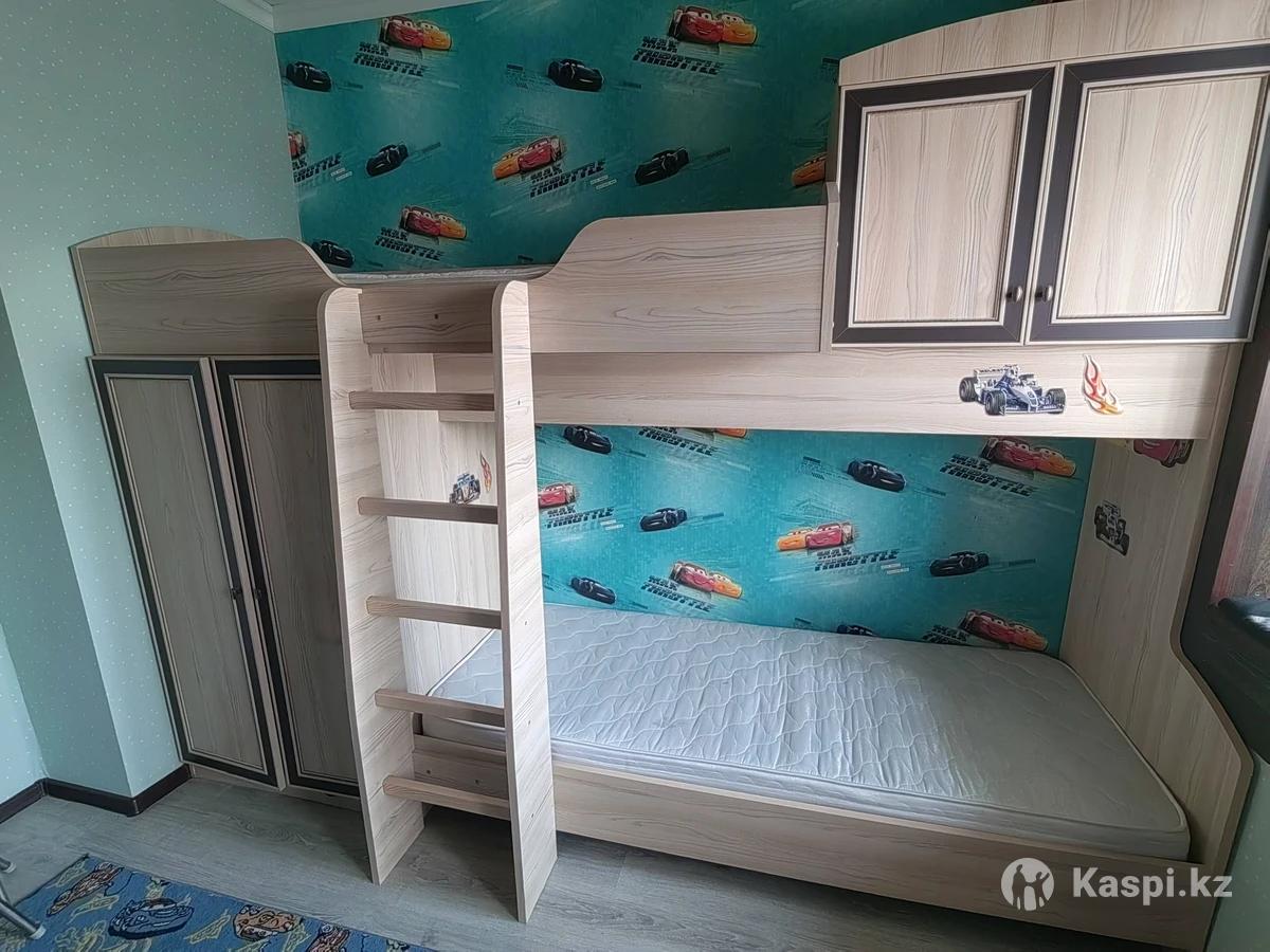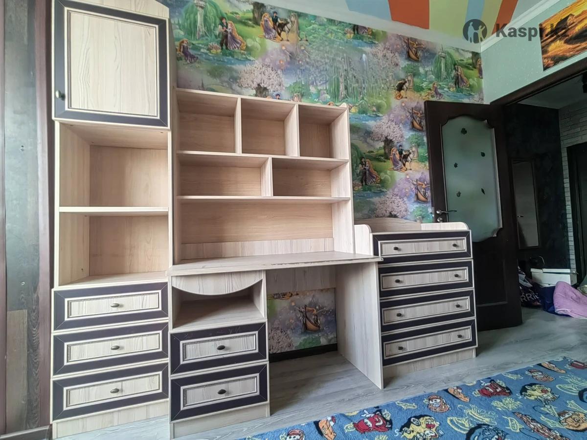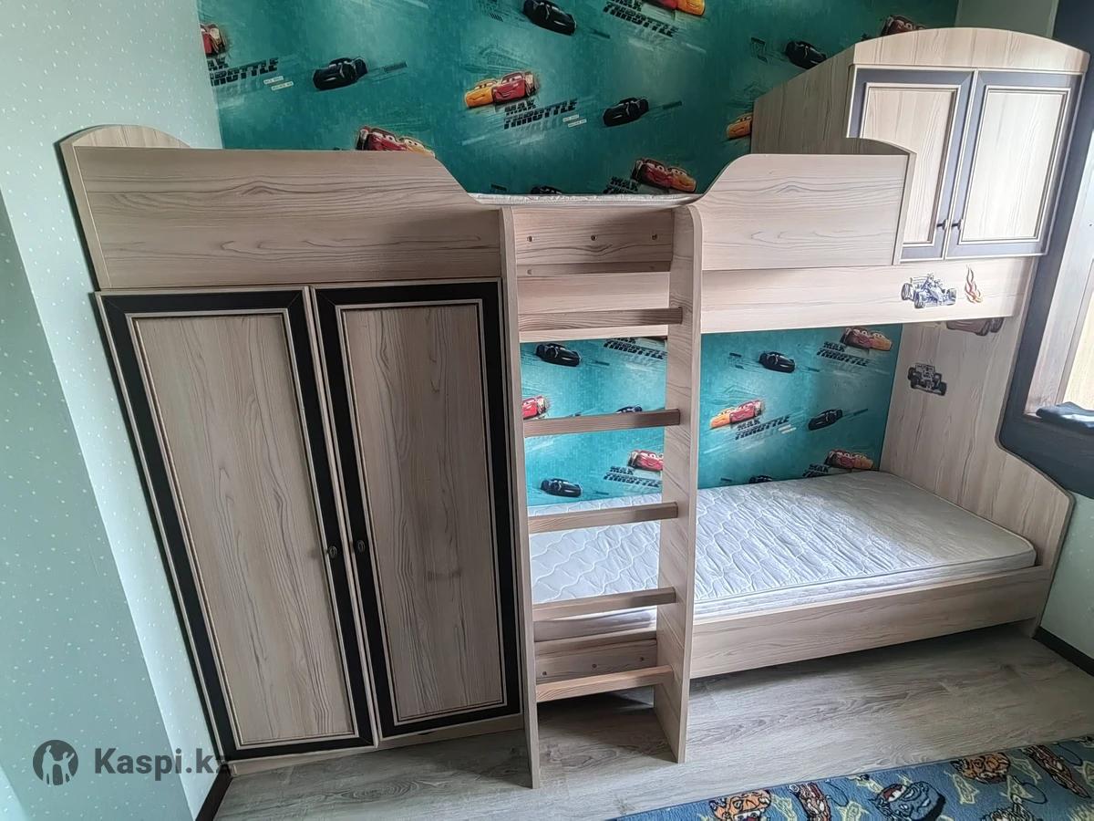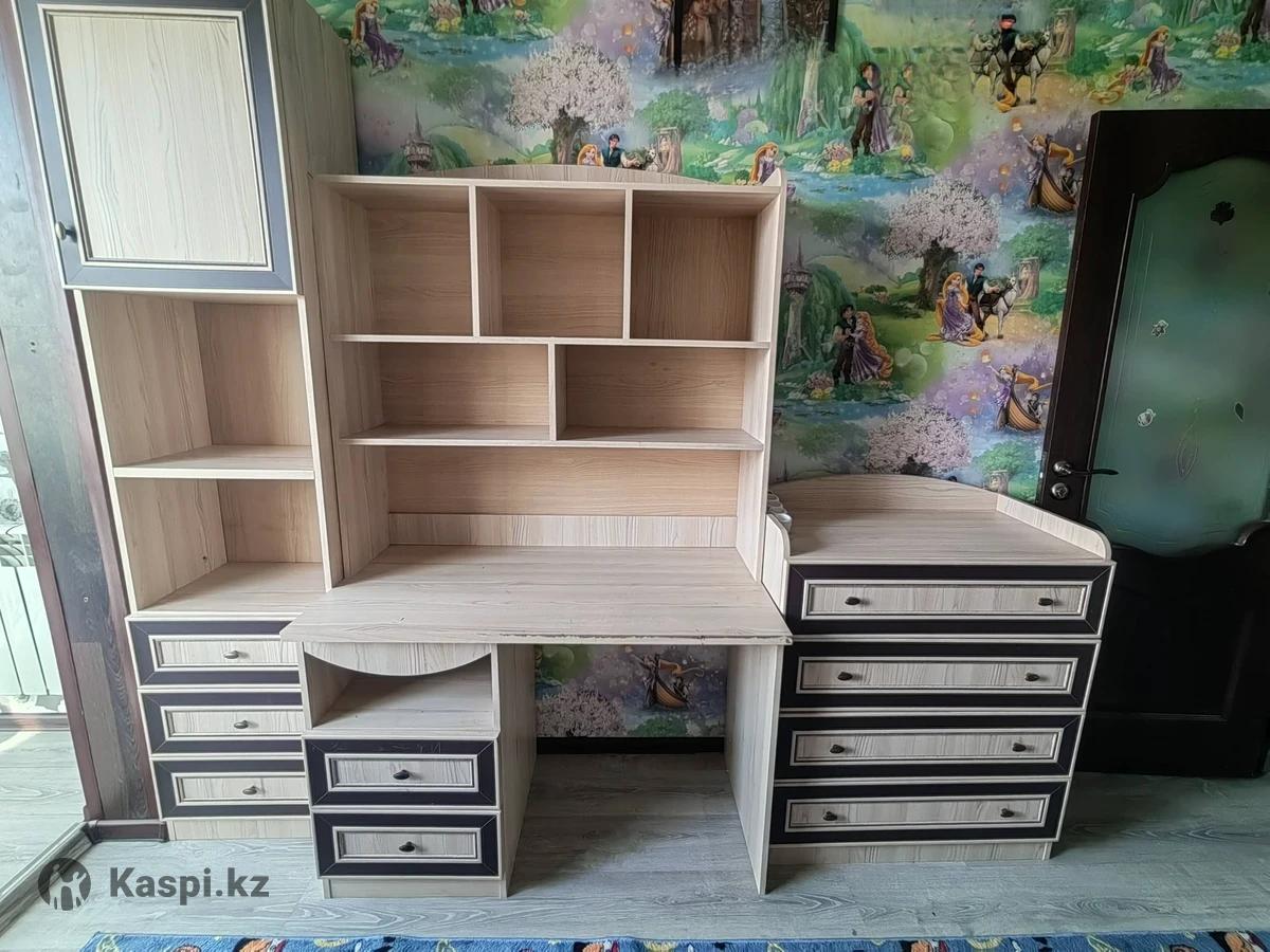 Продам детский спальный гарнитур в прекрасном состоянии. В комплекте: двухъярусная кровать со встроенным шкафом, комод, пенал, рабочий стол со встроенными выдвижными отсеками, также к столу прилагается книжные полки. В подарок дополнительно отдадим угловую полку открытого типа и вместительный шкаф.