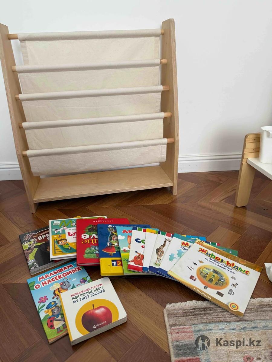 Детский стеллаж для книг (в подарок книги на фото) от Valdi. Натуральное дерево, отличное состояние. Материал снимается и стирается. Самовывоз