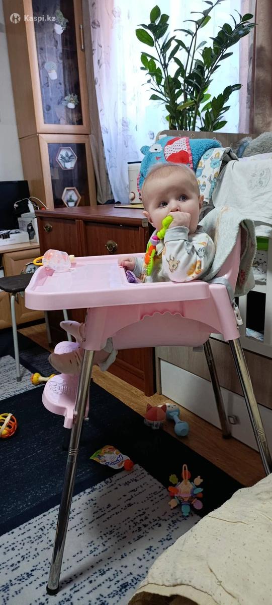 Продаю, столик для кормления (для девочки) Стульчик сделан из прочного пластика Ножки металлические (устойчивые) регулировка по высоте Подножка в комплекте Имееться ремень безопасности,чехол отсутствует Столик съёмный, удобно использовать за общим столом В уходе прост При покупке отдам в дар 5 пакетов вещей на девочку с рождения до года,вещи практически новые