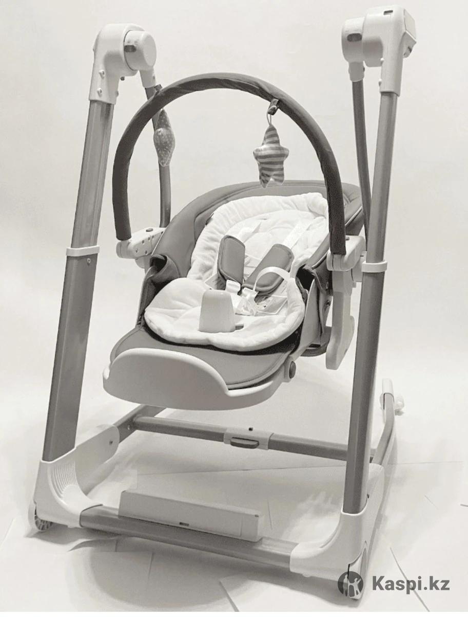 Новая обновленная модель с сенсорным управлением Видео в каспи Видео сборку предоставим Детский стульчик и качеля SG129 - предназначен для детей от 3 месяцев и до 3-х лет. - Стульчик качели с 0 до 1 годика - Стульчик шезлонг с 0 до 1 годика - Стульчик для кормления со столиком с 6 мес до 3 лет - Приставной стульчик для кормления с 6 мес до 3 лет - Стульчик бустер с 1 годика до 4 лет Стульчик для кормления с рождения имеет 8 режимов скорости Бесшумный маятниковый механизм, позволяет укачивать ребенка в стульчике, как в обычных электронных качалках Про развитие малыша позаботится музыкальный модуль с приятными мелодиями. Безопасность обеспечат: устойчивая конструкция, надежные пятиточечные ремни и ограничитель от сползания на столике Материал ЭКО кожа и мягкий вкладыш Таймер 15/30/45 минут, качает от сети и батареек AA Съёмная двойная столешница. Рекомендованный возраст: с 3 месяцев до 3 лет Комплектация: дуга - 1 подвеска, карусель - 2 подвески, адаптер питания, 4 колеса Ремень безопасности: 5-точечный Высота: регулируемая 7 положений СПИНКА: Спинка: регулируемая, 3 положения (сидя, полулежа и лежа) СТОЛИК: Столик: съемный. регулируемый по отношению к спинке. ДОПОЛНИТЕЛЬНО: Электропривод: есть Чехол: съемный из экокожи и матрасик Подножка: регулируемая (3 положения) Высота и спинка регулируемые Матрасик: съемный КАЧЕЛИ: Блок управления: есть Таймер: 15 / 30 / 60 минут Режим укачивания Музыка