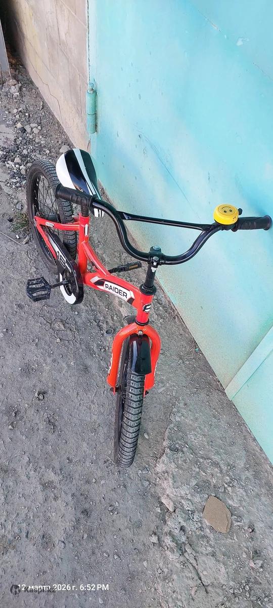 Велосипед детский 18" gw-типа со страховочными колесами, цвет оранжево-черный, Raider Характеристики модели: размер колес 18 дюймов стальная классическая рама GW-тип ножной тормоз звонок стальные крашенные обода седло с наполнителем из пены ограничитель поворота руля материал: металл покрышки с камерой возраст от 5 до 10 лет максимальная нагрузка 65 кг Состояние: отличное, все исправно работает.