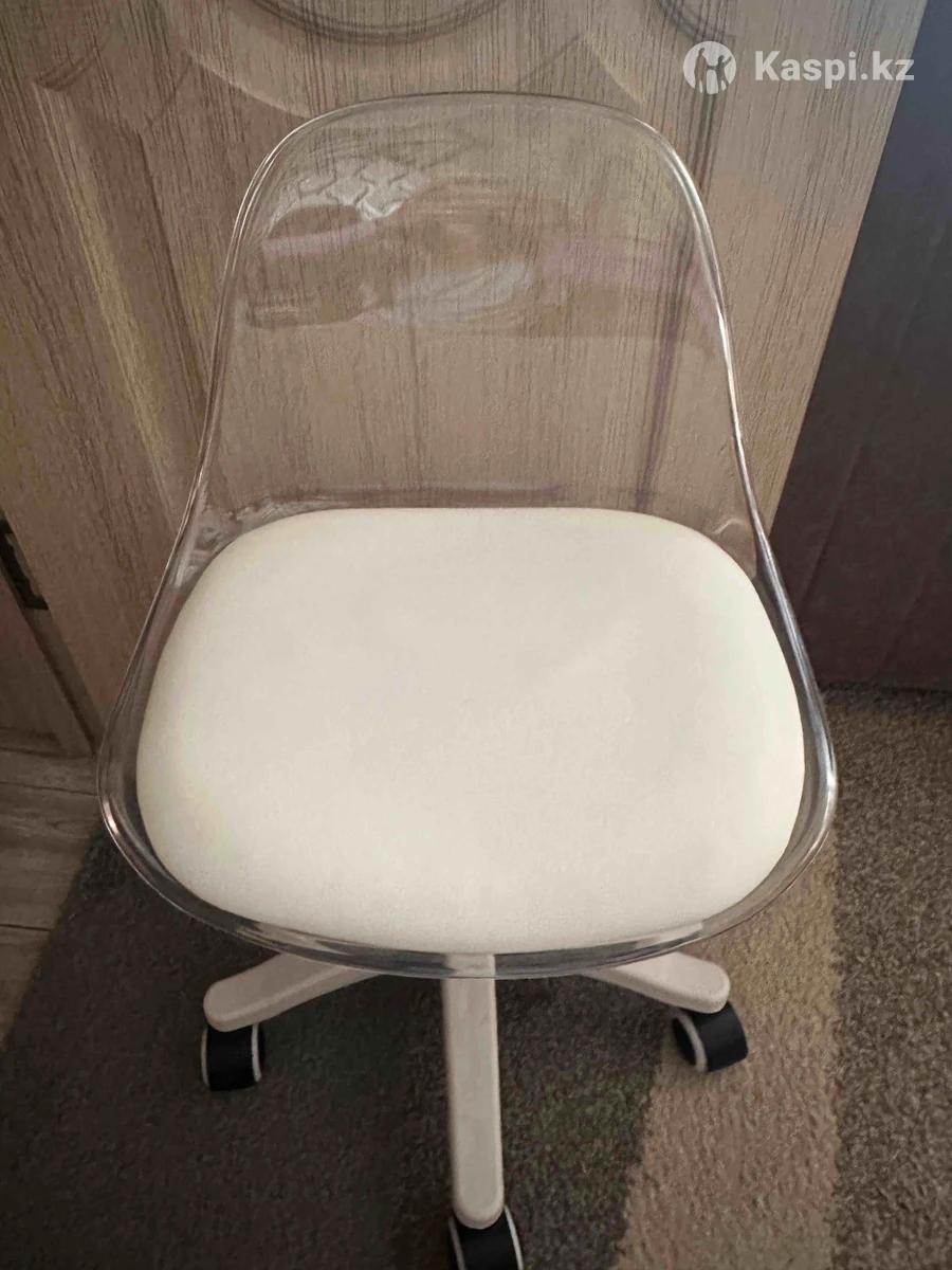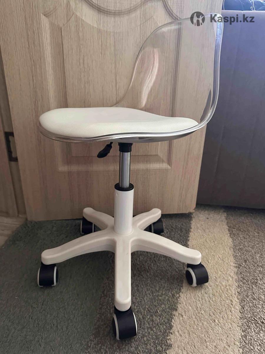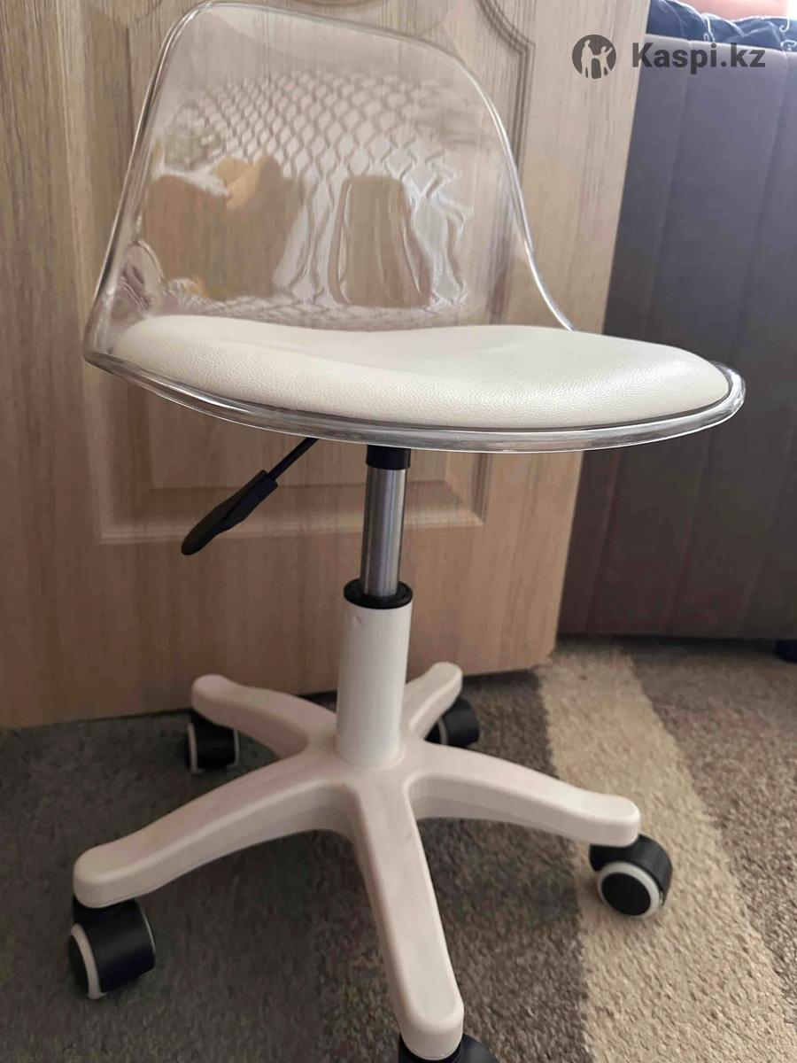 Бесшумные колеса, газлифт, антивандальный материал. Белый цвет, прозрачная спинка.