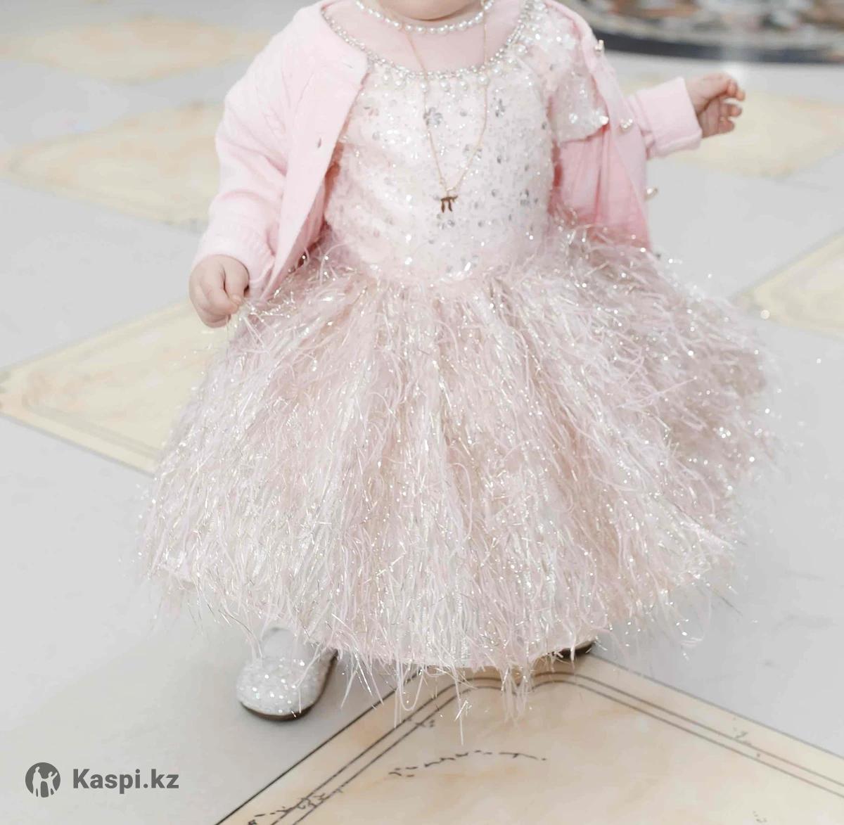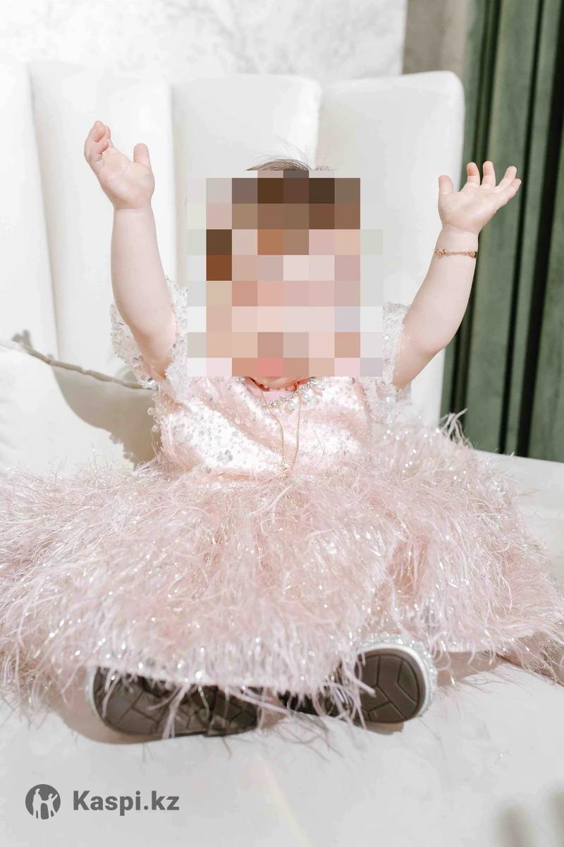 Продаю нарядное платье (р. 80) Нежно-розовое платье со стразами и перьями. Надевали всего один раз на первый день рождения — состояние отличное. Идеально подойдет на праздник, тусаукесер или фотосессию. 🎁 В подарок — туфельки 20 размера.