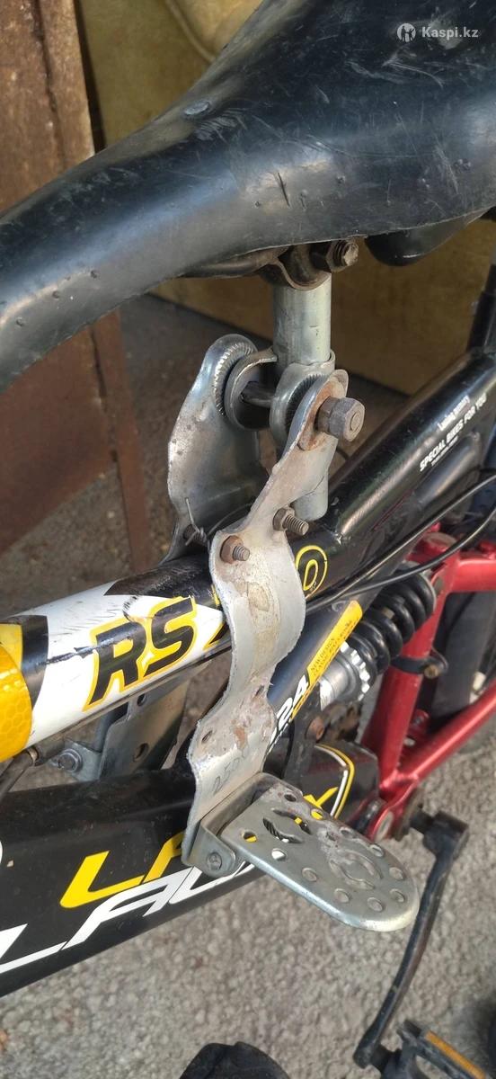 Сиденье детское для велосипеда. Крепится на переднюю часть рамы велосипеда. Сиденье регулируемое по высоте и наклону. Подножки складываемые. Удобно возить детей на велосипеде впереди себя видя что они делают. Реальному покупателю скидка будет. мкр. Шанырак 2, ул. Оркен 28.