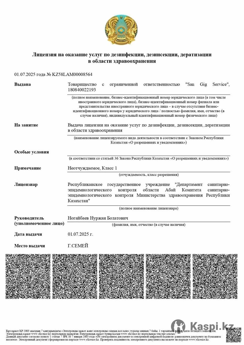 Дезинфекция с гарантией до 3 лет | Официально | Семей Предлагаем профессиональные услуги по дезинфекции в городе Семей и области. ✅ С лицензией и официальным договором ✅ Гарантия до 36 месяцев ✅ Офис и склад в г. Семей ✅ Безопасно для людей и животных ✅ Сертифицированные препараты Обрабатываем квартиры, дома, офисы, склады, подъезды и любые помещения. 📞 +— звоните или пишите в 📍 Работаем быстро и качественно. Выезд в день обращения!