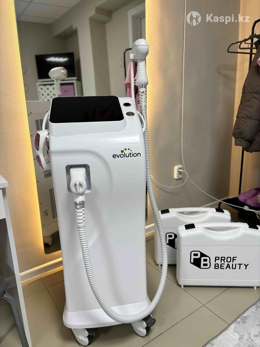 Продаем Лазерный аппарат Evolution 2023 года Можно в рассрочку Kaspi На гарантии 1 год Продаем из-за ненадобности и покупки другого аппарата Плотная запись=Максимум дохода Тип лазера: Диодный лазер с длиной волны 808 nm (нанометров). Эта длина волны считается оптимальной для глубокого проникновения и эффективного воздействия на меланин в волосяном фолликуле Аппарат Evolution от Prof Beauty предназначен для проведения высокоэффективной и безопасной лазерной эпиляции для всех фототипов кожи. Встроенная CRM-система: Позволяет хранить данные клиентов (имя, даты записей, информацию о процедурах) Насадка манипулы охлаждается до -20°C, что защищает эпидермис от перегрева, минимизирует болевые ощущения и снижает риск ожогов.