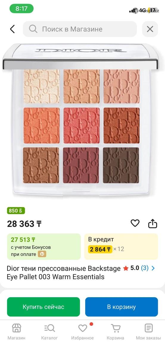 Dior Backstage Eye Palette 003 Warm Essentials Очень приятная текстура, бархатная на ощупь Красиво ложатся, легко тушуются, держатся целый день. Пользовалась пару раз только тем, что по центру снизу. Мне подарили, но не мои цвета, к сожалению. ОРИГИНАЛ 13.000тг