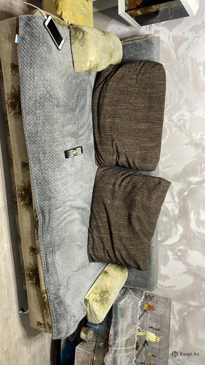 Диван б/у в нормальном состоянии раскладывается как двухспальная кровать, внутри ящик для белья. 1 метр90 см длина.