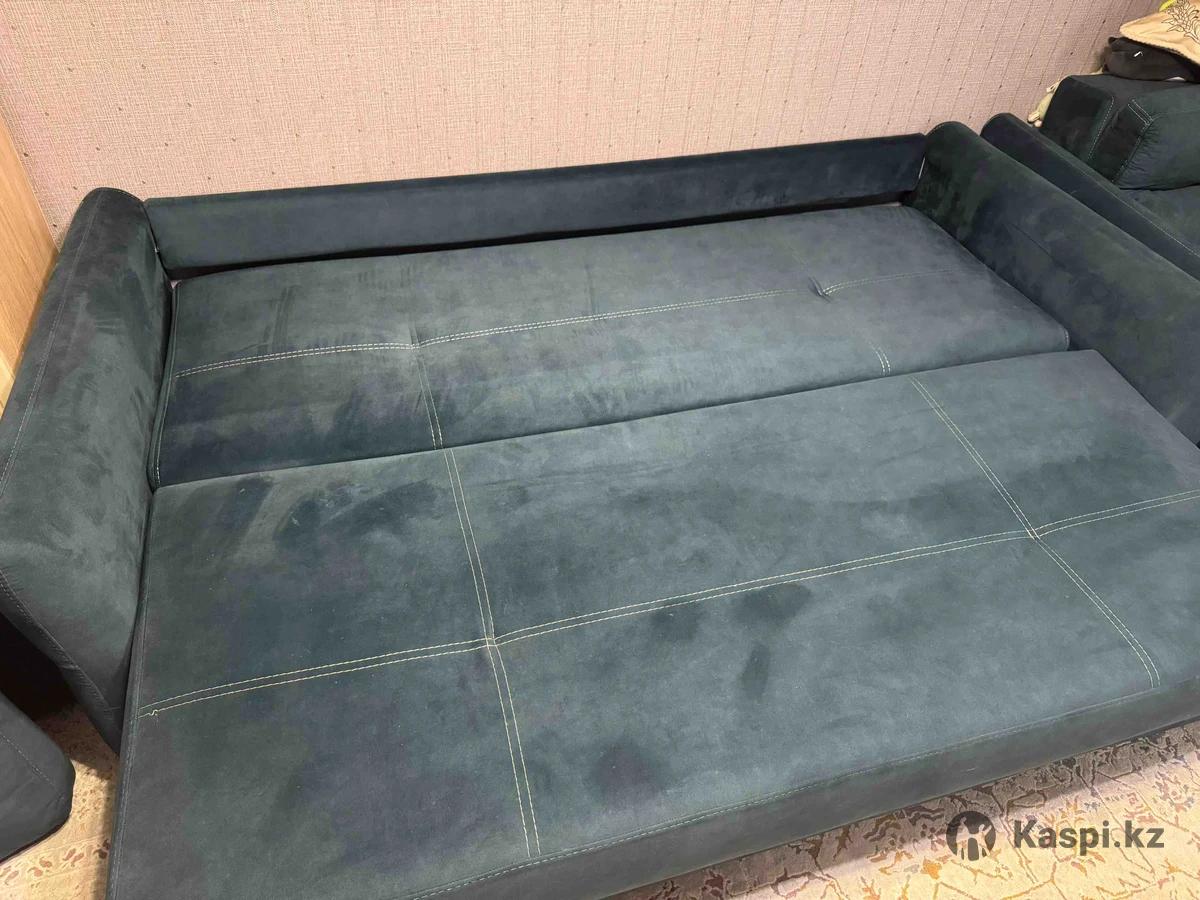 Диван почти новый, все задвижки работают , темно-синего цвета, мягкий и удобный