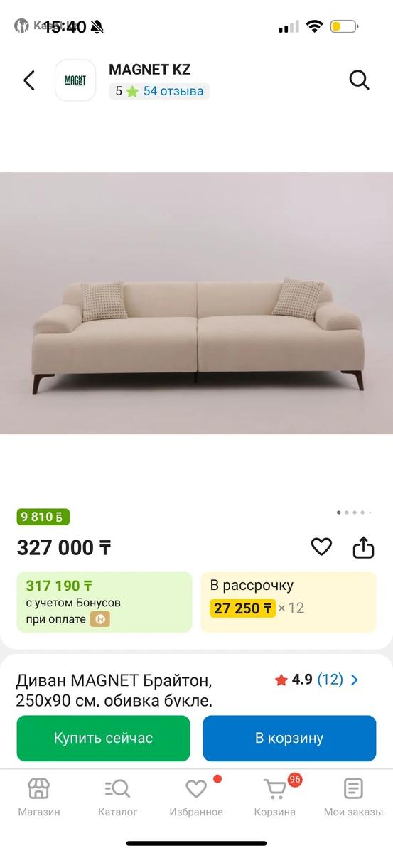 Продам диван в очень хорошем состоянии. Пользовались меньше месяца. Диван MAGNET Брайтон, 250х90 см, обивка букле, слоновая кость