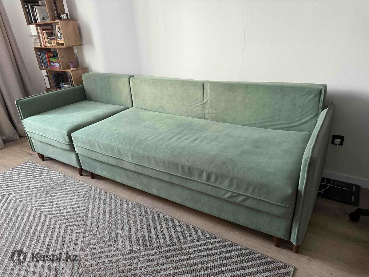 Диван 3 метра, 80см ширина сидячего места. Можно ставить как прямой диван или как угловой (трансформер) В разложенном виде спальное место может быть как 3 метра на 150см (если полностью разложить) так и 190 на 150см Брали 1,5 года назад примерно за 300тыс. Под диваном есть ящики для хранения. Состояние хорошее. Продаем в связи с покупкой кровати, торг уместен