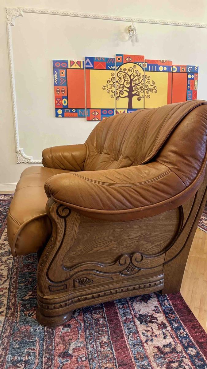 Продается диван и 2 кресла бренда пинксдрев — качественная премиальная мебель из натуральной кожи и массива дерева. Комплект: диван + 2 кресла 100% натуральная кожа Деревянный массив, классический дизайн Покупали 4 года назад за 4.000.000 тенге Состояние хорошее, но есть естественные потертости на коже (учтено в цене). Конструкция прочная, каркас в отличном состоянии. Идеально подойдет для гостиной, кабинета или офиса — выглядит солидно и дорого. ТОРГ УМЕСТЕН
