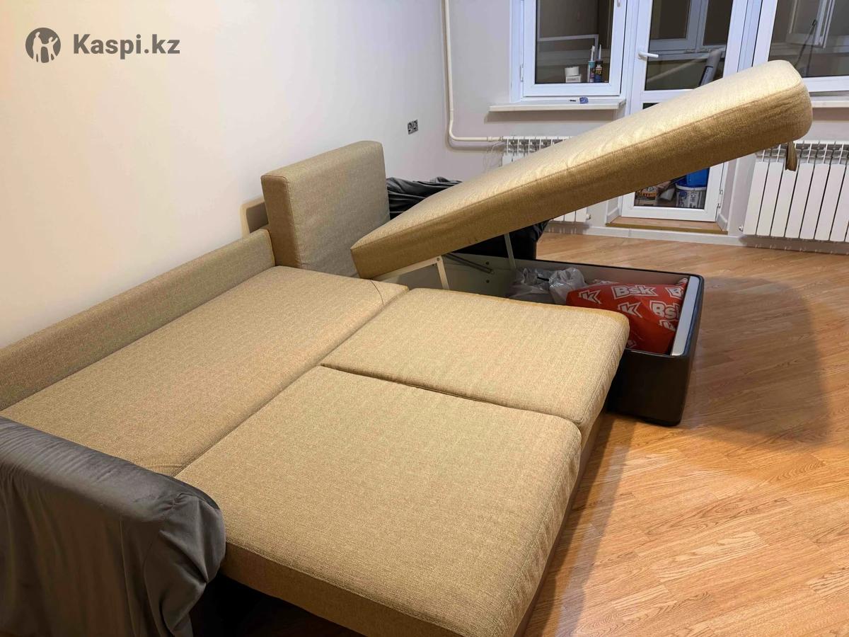 Диван в отличном состоянии. Чистый без запахов. Мягкий, удобный с подушками и большим местом для хранения вещей. Раскладной. Большой пуф в комплекте.Подлокотники с чехлами отличного качества. В подарок есть 2 тумбочки.