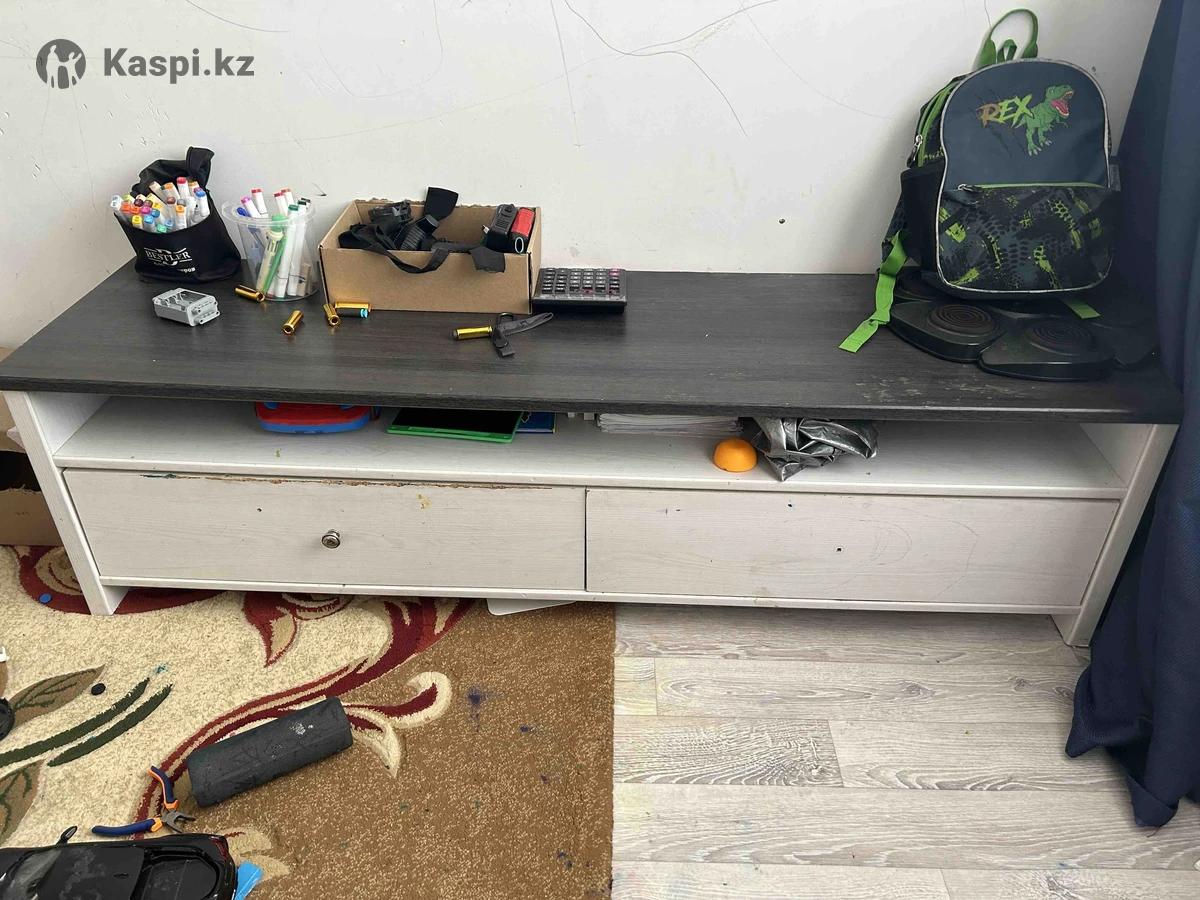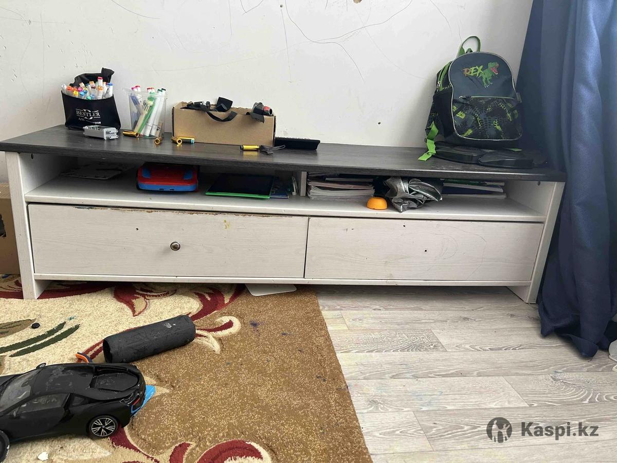 Диван раскладной, размер: 2100х980х820, спальное место размер:2100х1450. В подарок тумба и пуфик. Находиться 10 мкр.